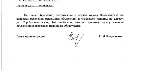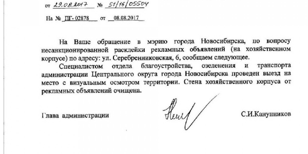 Номер жалобы:22576 Тип жалобы:Иные проблемы ЖКХ Название объекта:Управляющая Компания Регион:Новосибирская область Город:Новосибирск Адрес:Серебренниковская ул., 4/4 Описание жалобы:Объявления на фасаде Статус: