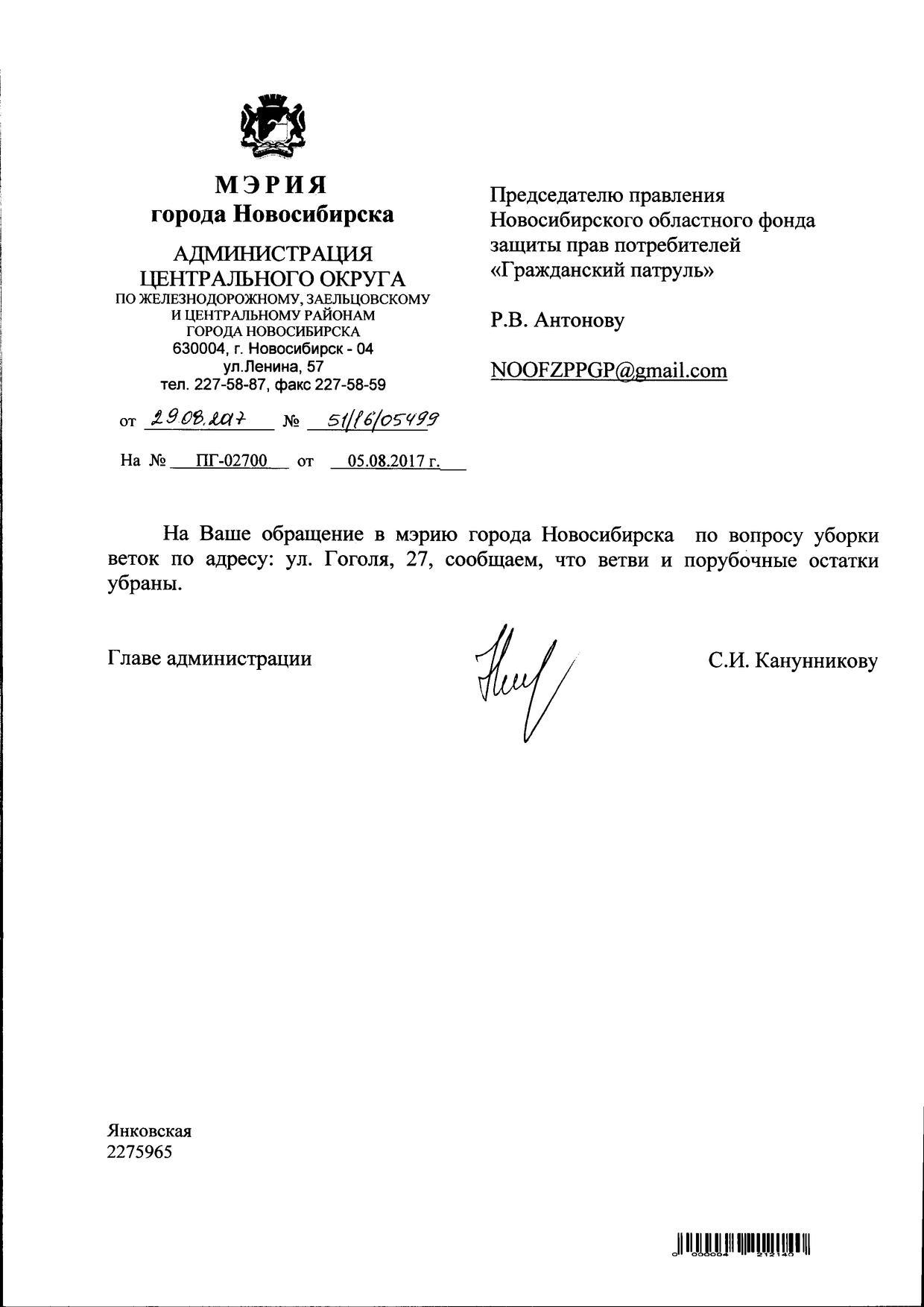 Номер жалобы:22482 Тип жалобы:Иные проблемы ЖКХ Название объекта:Управляющая Компания Регион:Новосибирская область Город:Новосибирск Адрес:ул. Гоголя, 27 Описание жалобы:Гоголя 27 ,ветки Рядом с остановкой Статус: