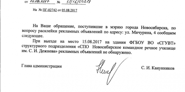 Номер жалобы:22494 Тип жалобы:Иные проблемы ЖКХ Название объекта:Администрация Регион:Новосибирская область Город:Новосибирск Адрес:Красный пр., 17 Описание жалобы:Объявление на столбе Статус: