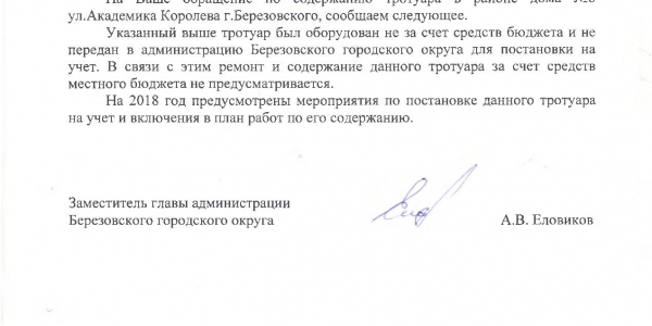 Номер жалобы:22503 Тип жалобы:Иные проблемы ЖКХ Название объекта:УК ООО "ЖКХ-Холдинг" Город:Березовский Адрес:Березовский, улица Академика Королева, 8 Описание жалобы:Уже много лет в дождливую погоду на этом месте расползается большая грязная лужа, которую невозможно перепрыгнуть. Некто (предположу, что это дворник) накидывает кучу досок сверху, думая, что это спасёт ситуацию. Не знаю как там можно перейти пожилому человеку или женщине с коляской. Но чистым не останешься точно.