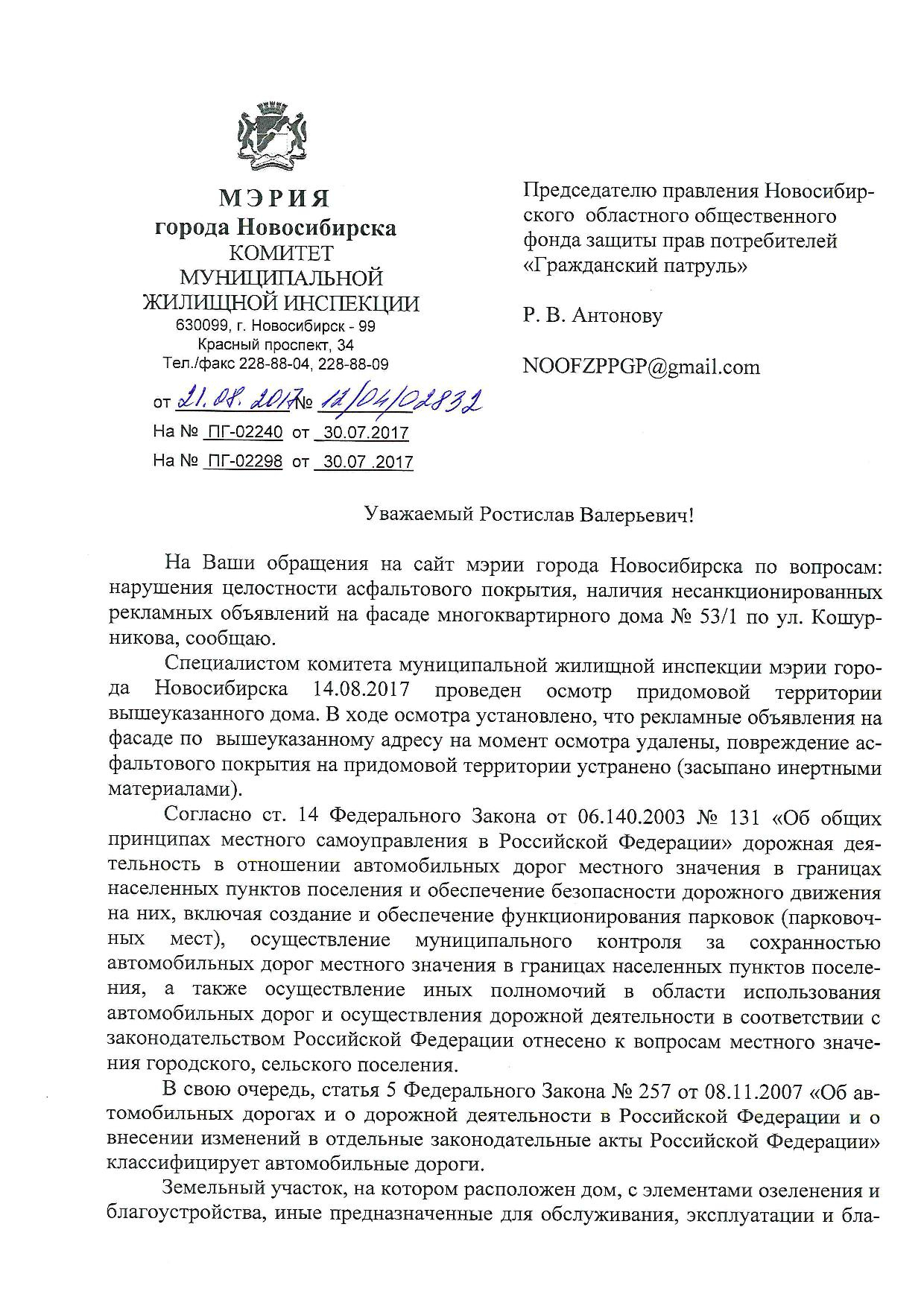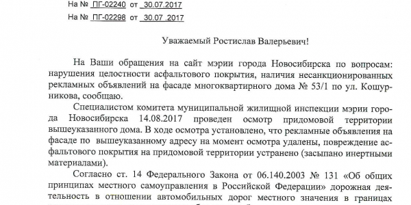Номер жалобы:22130 Тип жалобы:Иные проблемы ЖКХ Название объекта:Управляющая Компания Город:Новосибирск Адрес:Новосибирск, улица Кошурникова, 53/1 Описание жалобы:Фасад разрисован Статус: