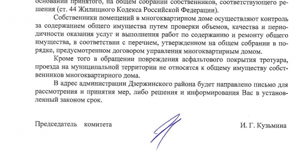 Номер жалобы:22075 Тип жалобы:Иные проблемы ЖКХ Название объекта:Управляющая Компания Город:Новосибирск Адрес:Новосибирск, улица Адриена Лежена, 12/1 Описание жалобы:Комментарий Статус: