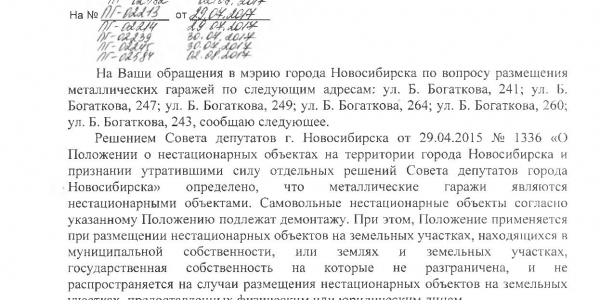 Номер жалобы:22010 Тип жалобы:Иные проблемы ЖКХ Название объекта:Управляющая Компания Город:Новосибирск Адрес:Новосибирск, улица Бориса Богаткова, 241 Описание жалобы:Гаражи Статус: