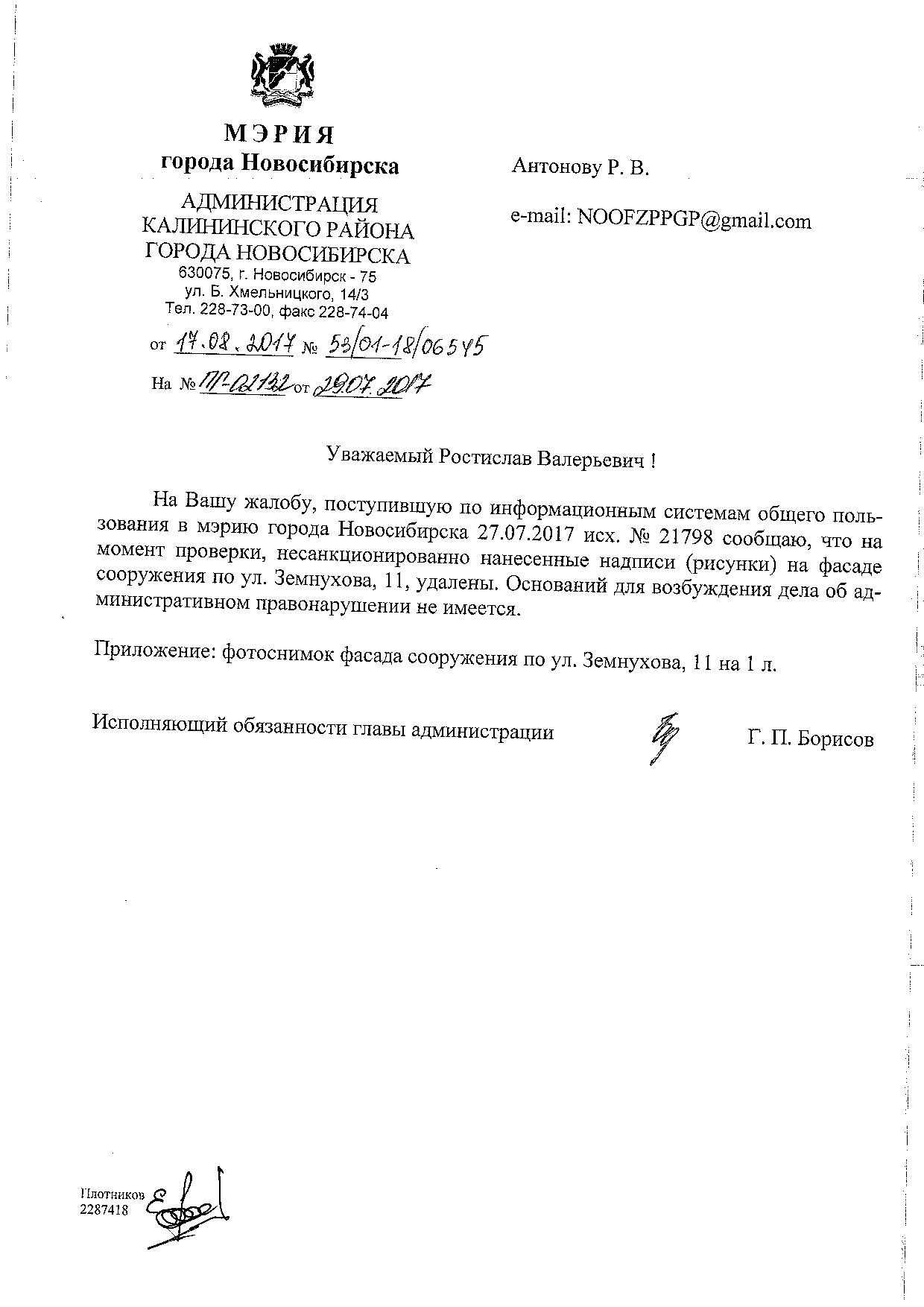 Номер жалобы:21802 Тип жалобы:Иные проблемы ЖКХ Название объекта:Управляющая Компания Город:Новосибирск Адрес:Новосибирск, улица Земнухова, 5 Описание жалобы:Фасад дома разрисован Статус: