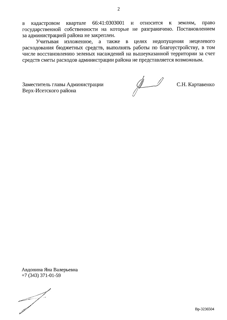 Номер жалобы:66923 Тип жалобы:Прочее Название объекта: Город:Екатеринбург Адрес:Екатеринбург, микрорайон Юго-Западный Описание жалобы:Уточнить адрес. Негодное благоустройство территории. Городская служба водоканала ремонтировала коммуникации, после работ оставила кучу земли. Ко всему прочему, земляные работы выполнялись экскаватором, при работе которого было полностью выкорчевано дерево, которое в последствие погибло. Коммунальщики посчитали, что дерево в порядке и посадили его обратно, как в ни чем не бывало. Также были задеты при работах два дерева, сломаны ветки, поцарапана кора. Засохли рядом находившиеся кусты. Фотографии приложены. Требую качественного восстановления раскопанной территории. Требую посадки новых живых растений вместо погибших, восстановление газона. Статус:
