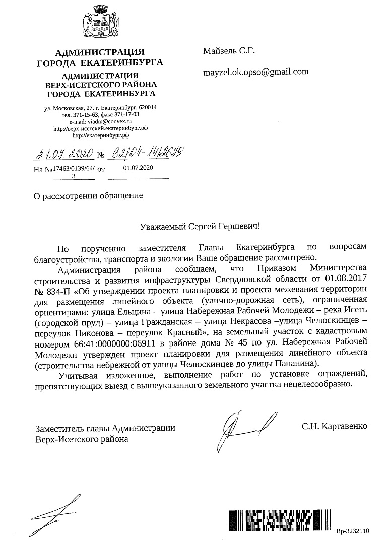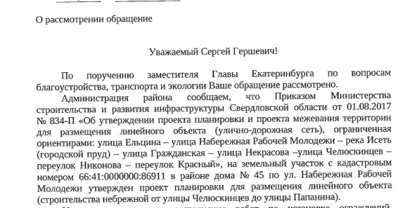 Номер жалобы:66922 Тип жалобы:Прочее Название объекта:мэрия Регион:Свердловская область Город:Екатеринбург Адрес:набережная Рабочей Молодёжи, 45 Описание жалобы:Необходима установка ограждений, препятствующих выезду с парковки на грунтовую дорогу вдоль набережной через разделяющий их газон. Статус: