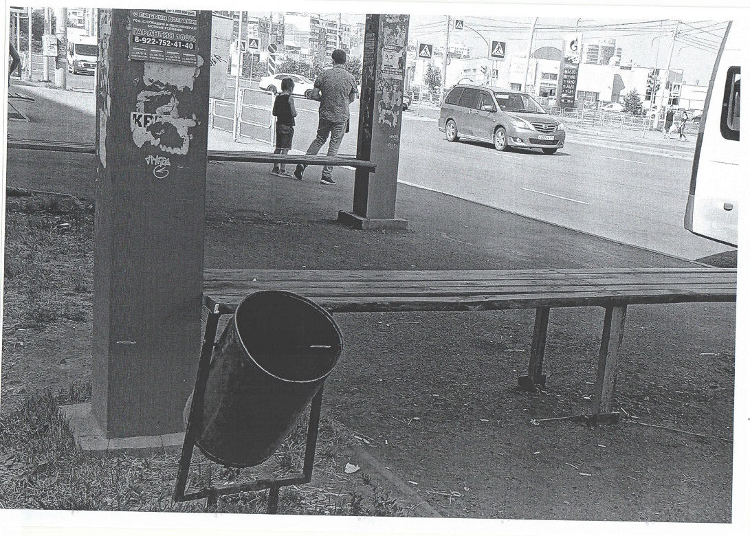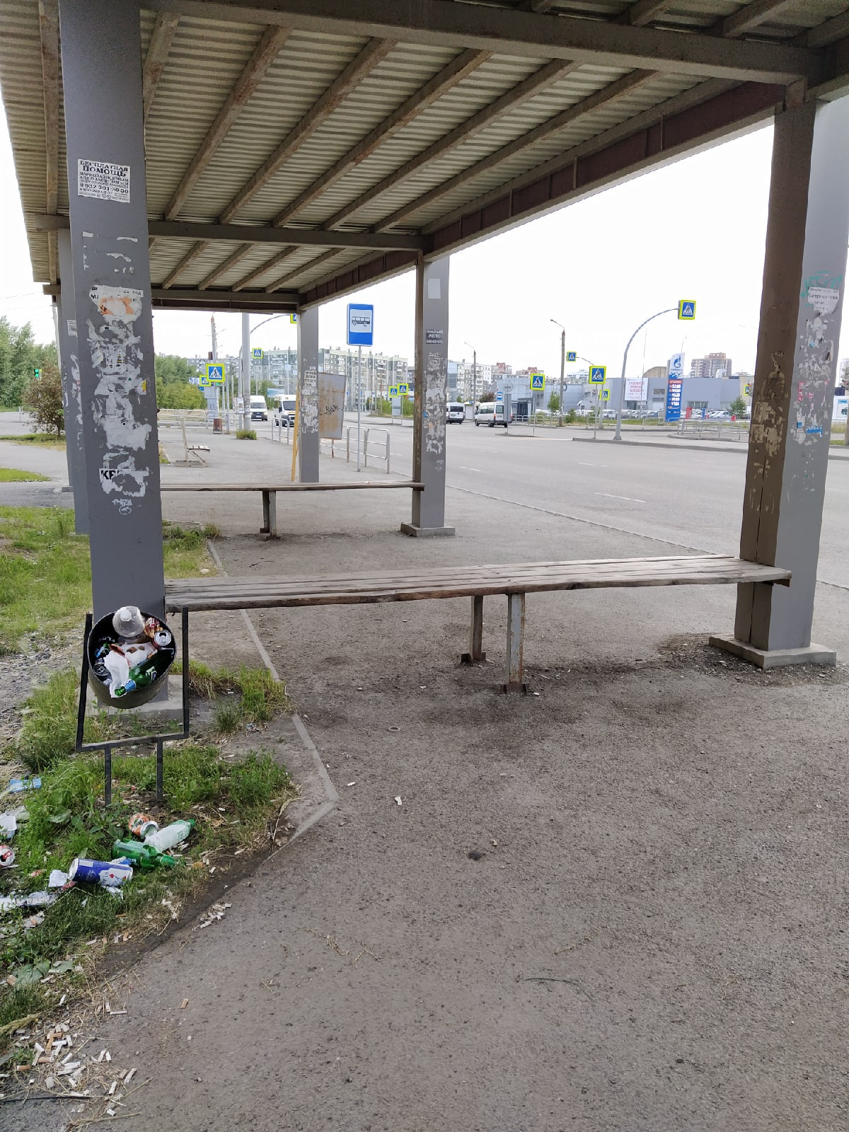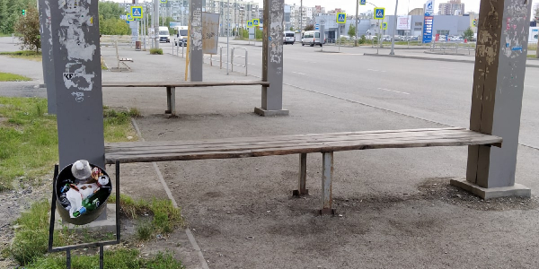 Отдельно отмечу расположение урны. Она расположена в 15 метрах от места ожидания горожан общественного транспорта, за двумя лавочками. Урна не для людей, а для галочки.