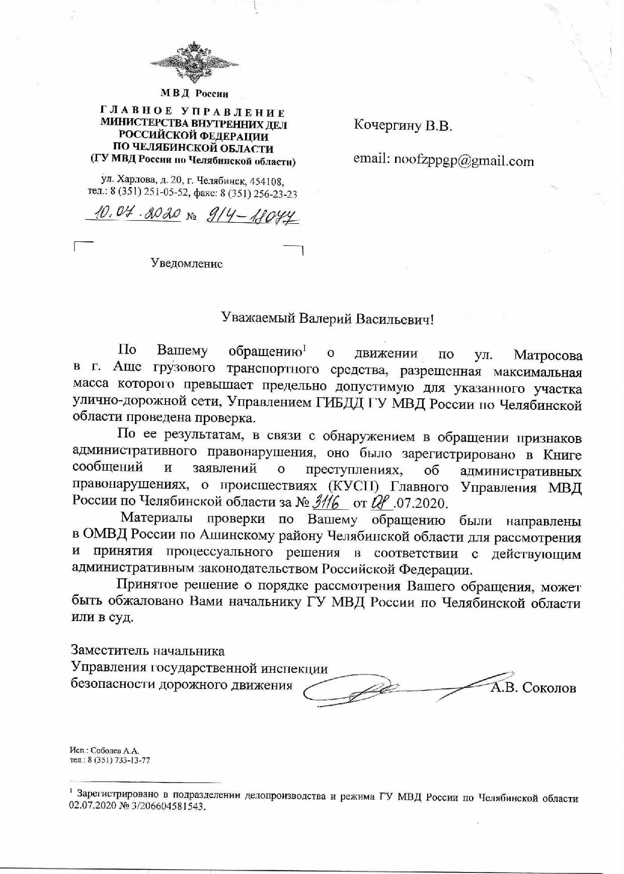 Номер жалобы:66954 Тип жалобы:Прочее Название объекта: Регион:Челябинская область Город:Аша Адрес:улица Матросова, 39 Описание жалобы:В черте города по ул. Матросова снова ездят фуры с превышающей массой, допустимой для дорог в городской черте, а так же превышающую допустимую нагрузку моста, через ручей горный. Фото 01.07.29, госномер В761НН716. Статус: