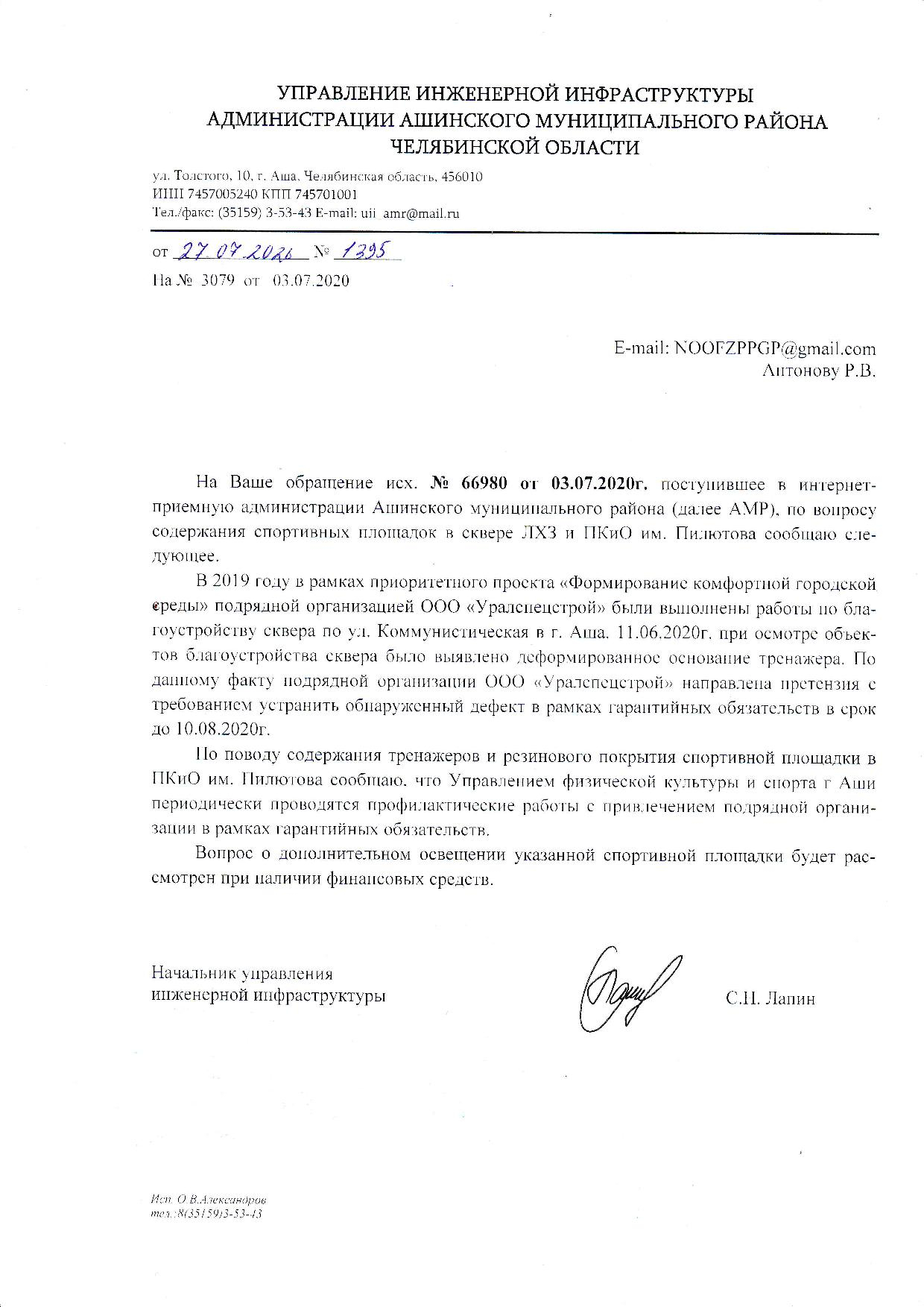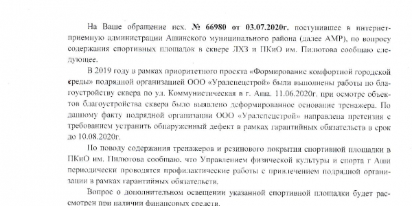 5) Так же - этих двух площадок уже не хватает. Они уже перегружены. Они удалены от многих других районов и поэтому доступны далеко не всем желающим. В Аше нужны еще как минимум две такие площадки. Прошу рассмотреть вопрос по их установке.