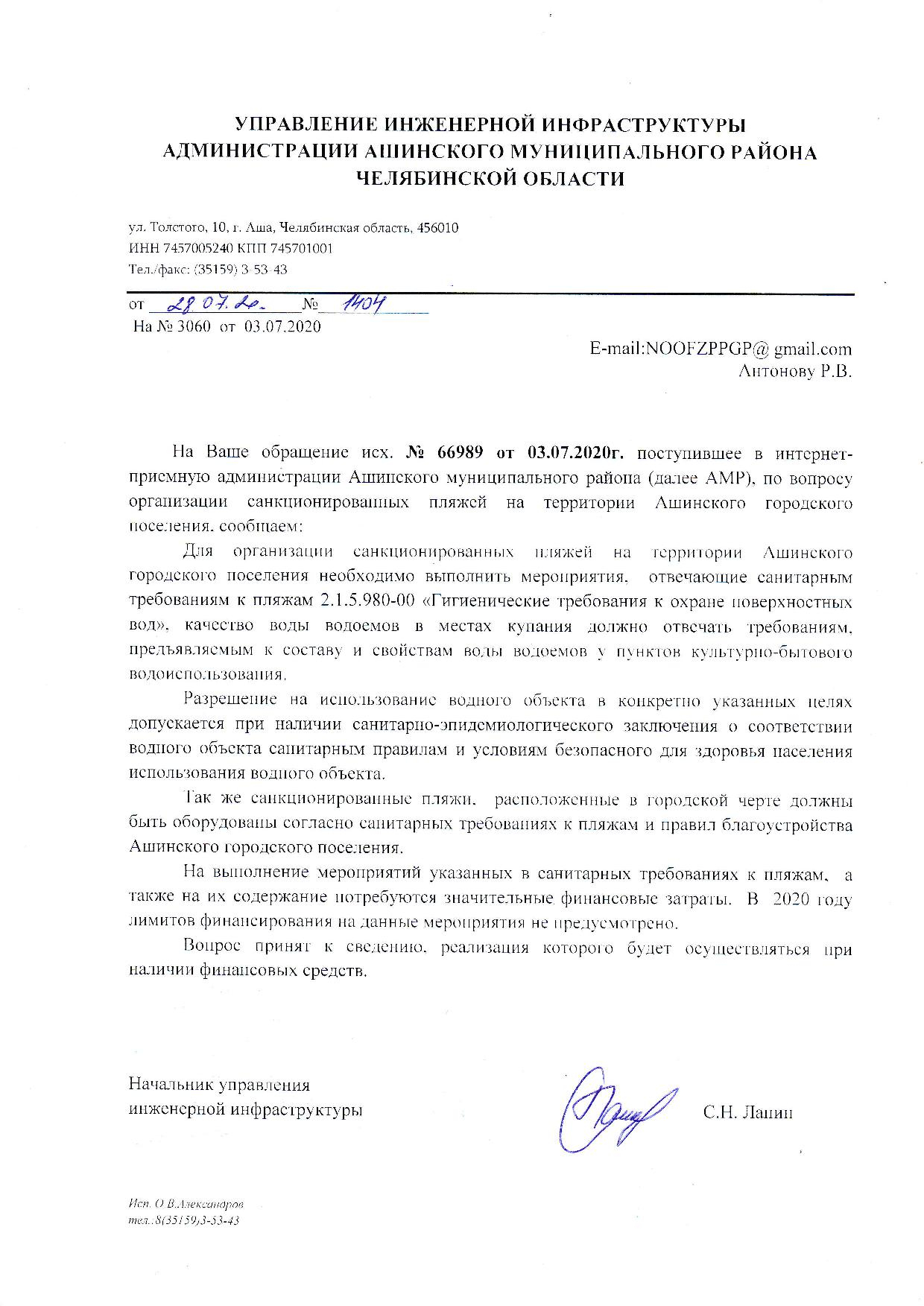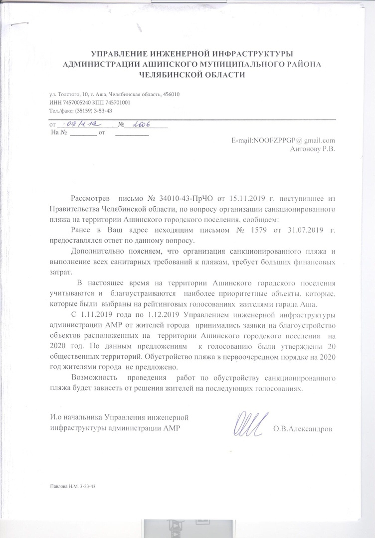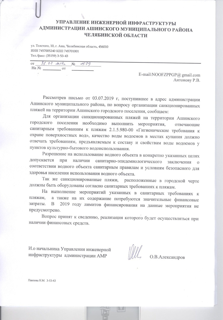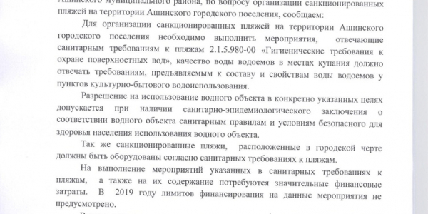 Номер жалобы:66989 Тип жалобы:Прочее Название объекта: Регион:Челябинская область Город:Аша Адрес:улица Толстого, 10 Описание жалобы:В Аше люди купаются на диких пляжах. Потому что в городе нет ни одного благоустроенного места для купания.