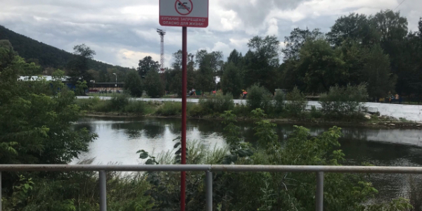 Однако, после этого вдоль берегов рек, в черте города, появились таблички сообщающие, что купание запрещено и даже опасно...