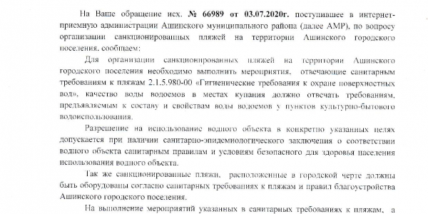 Направили обращения в Роспотребнадзор и в МЧС с просьбой прокомментировать ситуацию. (Роспотребнадзор что бы провёл проверку, где организовать пляж, а МЧС даст ответ о безопасности такого дикого отдыха.) Статус: