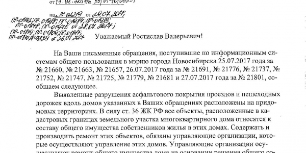 Номер жалобы:21739 Тип жалобы:Иные проблемы ЖКХ Название объекта:Управляющая Компания Город:Новосибирск Адрес:Новосибирск, улица Родники, 1/1 Описание жалобы:Объявления, разрисованный фасад Статус: