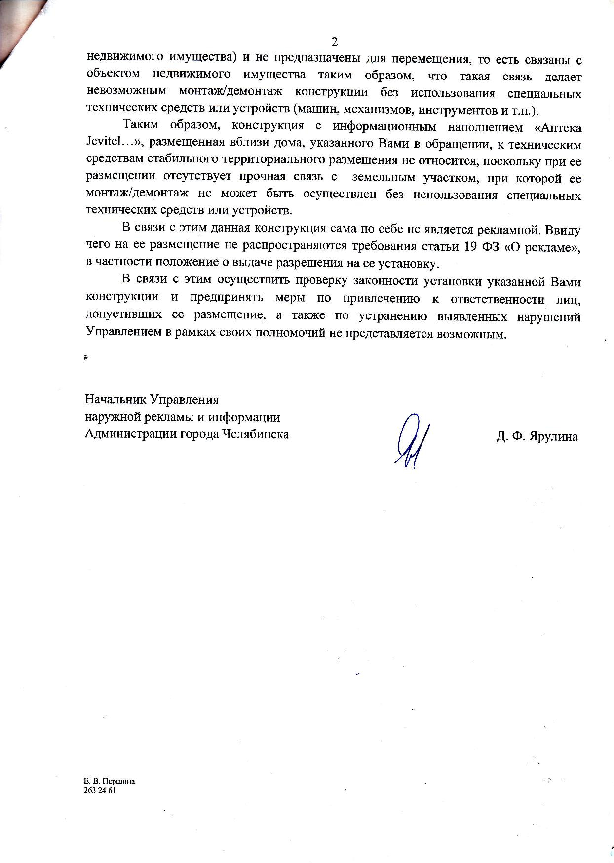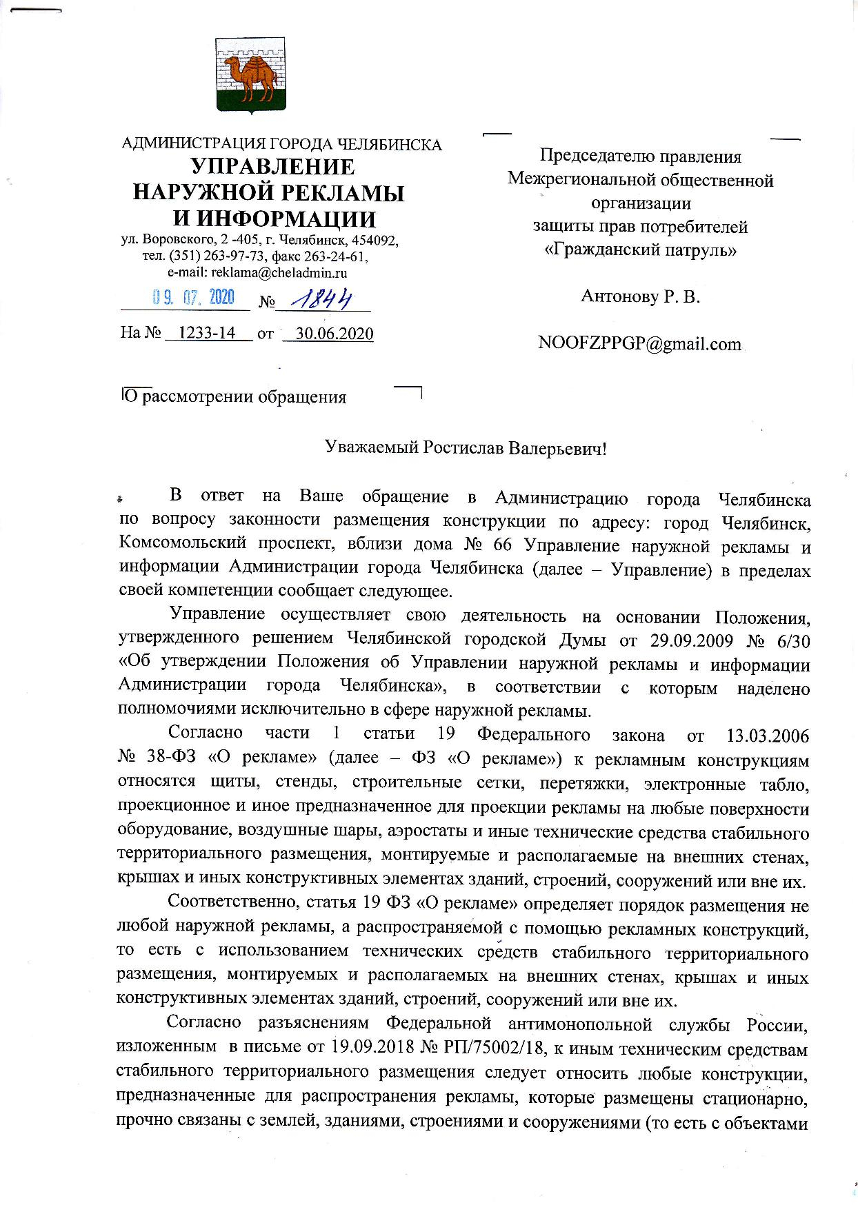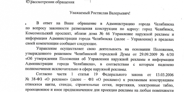 Номер жалобы:66881 Тип жалобы:Прочее Название объекта: Регион:Челябинская область Город:Челябинск Адрес:Комсомольский проспект, 66 Описание жалобы:Незаконная реклама на газоне Статус: