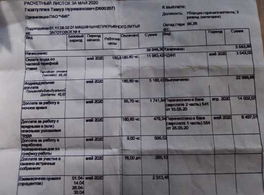 Номер жалобы:66888 Тип жалобы:Прочее Название объекта: Регион:Челябинская область Город:Челябинск Адрес:Челябинск, 2-я Павелецкая улица, 14 Описание жалобы:На Челябинском металлургическом комбинате (группа компаний Мечел) рабочие металлурги в литейном цехе зарабатывают 30 тыс общего и 26,5 на руки, что очень мало. Компания заявляет что средние зарплаты на комбинате у нас 50 тыс. Люди еле концы с концами сводят, у многих дети и ипотека.