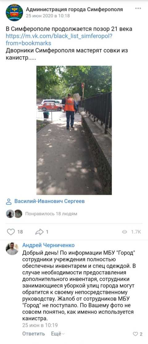 Официальный представитель Администрации Симферополя регулярно отчитывается об обеспеченности инвентарем, но это не так, фотографии с самодельный инвентарем прилагаю.