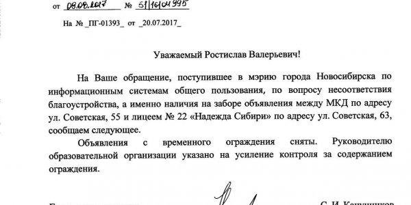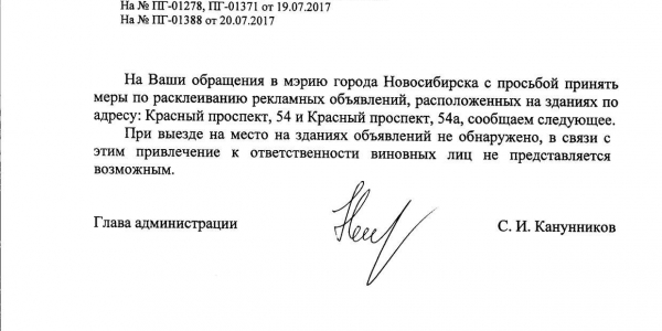 Номер жалобы:21164 Тип жалобы:Иные проблемы ЖКХ Название объекта:Управляющая Компания Регион:Новосибирская область Город:Новосибирск Адрес:ул. Советская, 26 Описание жалобы:Объявление на фасаде дома Статус: