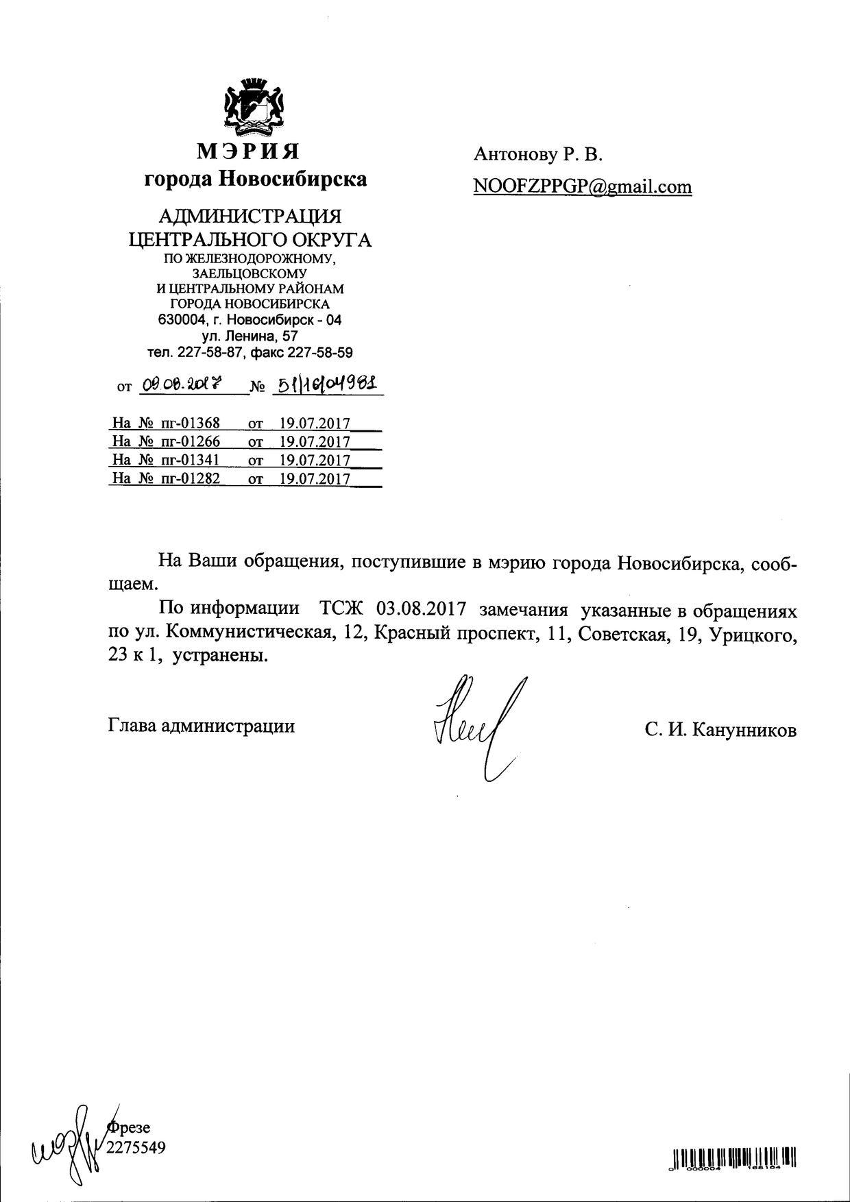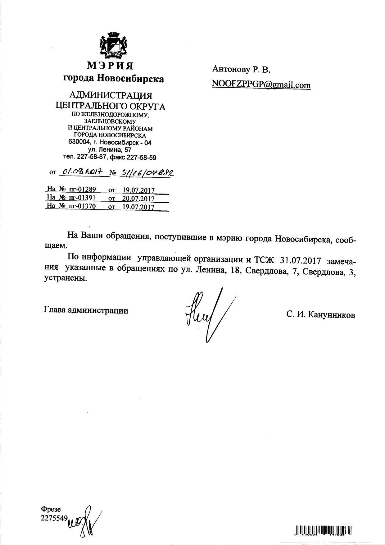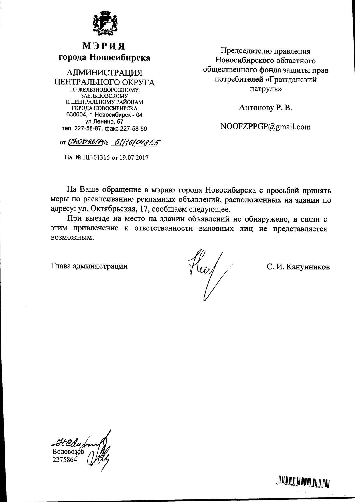 Номер жалобы:21088 Тип жалобы:Иные проблемы ЖКХ Название объекта:Управляющая Компания Регион:Новосибирская область Город:Новосибирск Адрес:Коммунистическая ул., 17 Описание жалобы:Объявления в неположенном месте Статус: