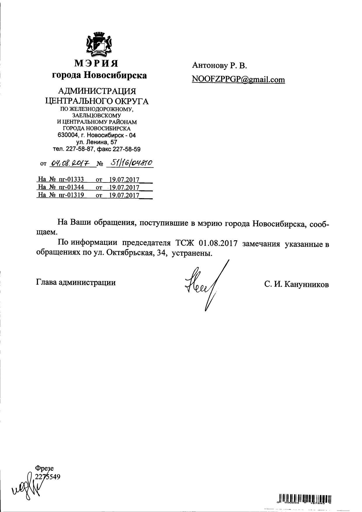 Номер жалобы:21082 Тип жалобы:Иные проблемы ЖКХ Название объекта:Управляющая Компания Регион:Новосибирская область Город:Новосибирск Адрес:Октябрьская ул., 34 Описание жалобы:Надписи на фасаде Статус: