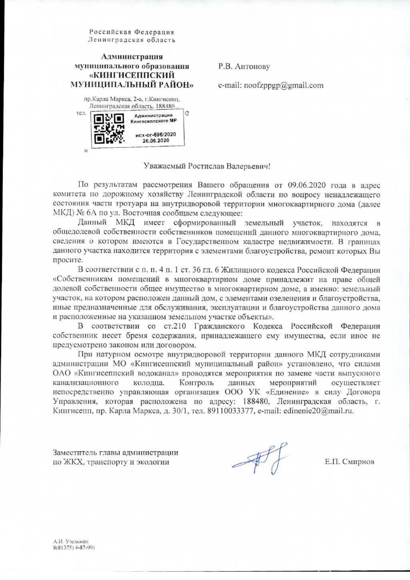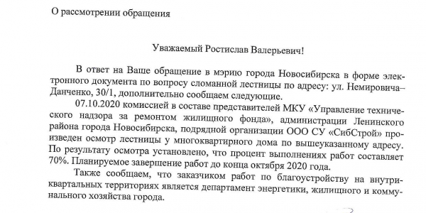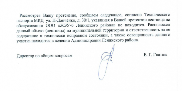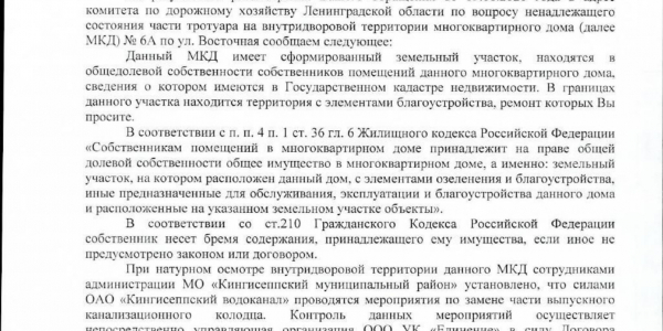 Номер жалобы:66685 Тип жалобы:Прочее Название объекта: Регион:Новосибирская область Город:посёлок Октябрьский Адрес:посёлок Октябрьский, Успешная улица, 7 Описание жалобы: Здравствуйте. Хотелось бы подать жалобу по поводу земель многоквартирных домов по улицам успешная. Дело в том что наши дома таунхаусы были сданы в эксплуатацию в 2016 году. И по выписке из егрн. Наша земля не является собственностью под домом. Кадастровый номер есть. Так же есть второй кадастровый номер земли, он общедолевой придомовой территории. Но и с ним не понятно ничего. Прилогаю вам документ выписка из егрн. Администрация по землям молчит наша местная. Статус:
