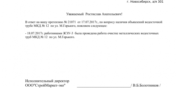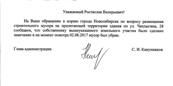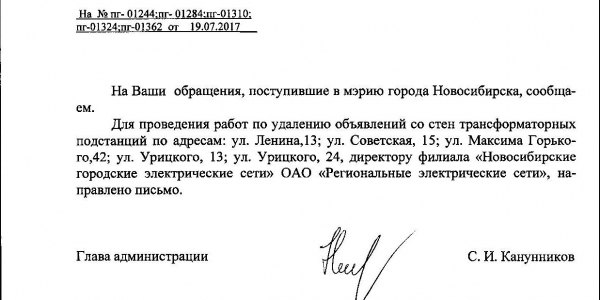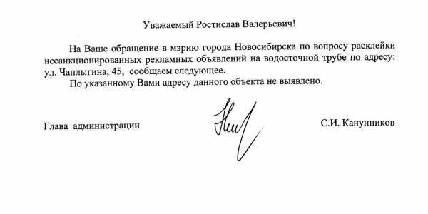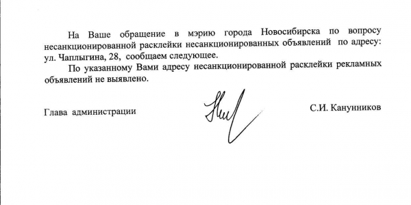 Номер жалобы:21067 Тип жалобы:Иные проблемы ЖКХ Название объекта:Управляющая Компания Регион:Новосибирская область Город:Новосибирск Адрес:ул. Максима Горького, 42 Описание жалобы:Объявление на хозяйственном корпусе Статус: