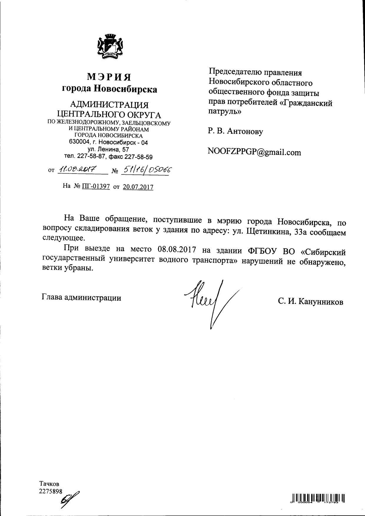 Номер жалобы:21060 Тип жалобы:Иные проблемы ЖКХ Название объекта:Управляющая Компания Регион:Новосибирская область Город:Новосибирск Адрес:ул. Щетинкина, 33а Описание жалобы:Щетинкина 33 А рядом с зданием ветки Статус: