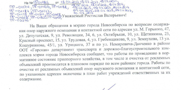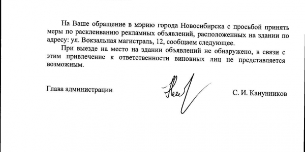 Номер жалобы:21019 Тип жалобы:Иные проблемы ЖКХ Название объекта:Управляющая Компания Регион:Новосибирская область Город:Новосибирск Адрес:ул. Урицкого, 37 Описание жалобы:Объявление на столбе Статус: