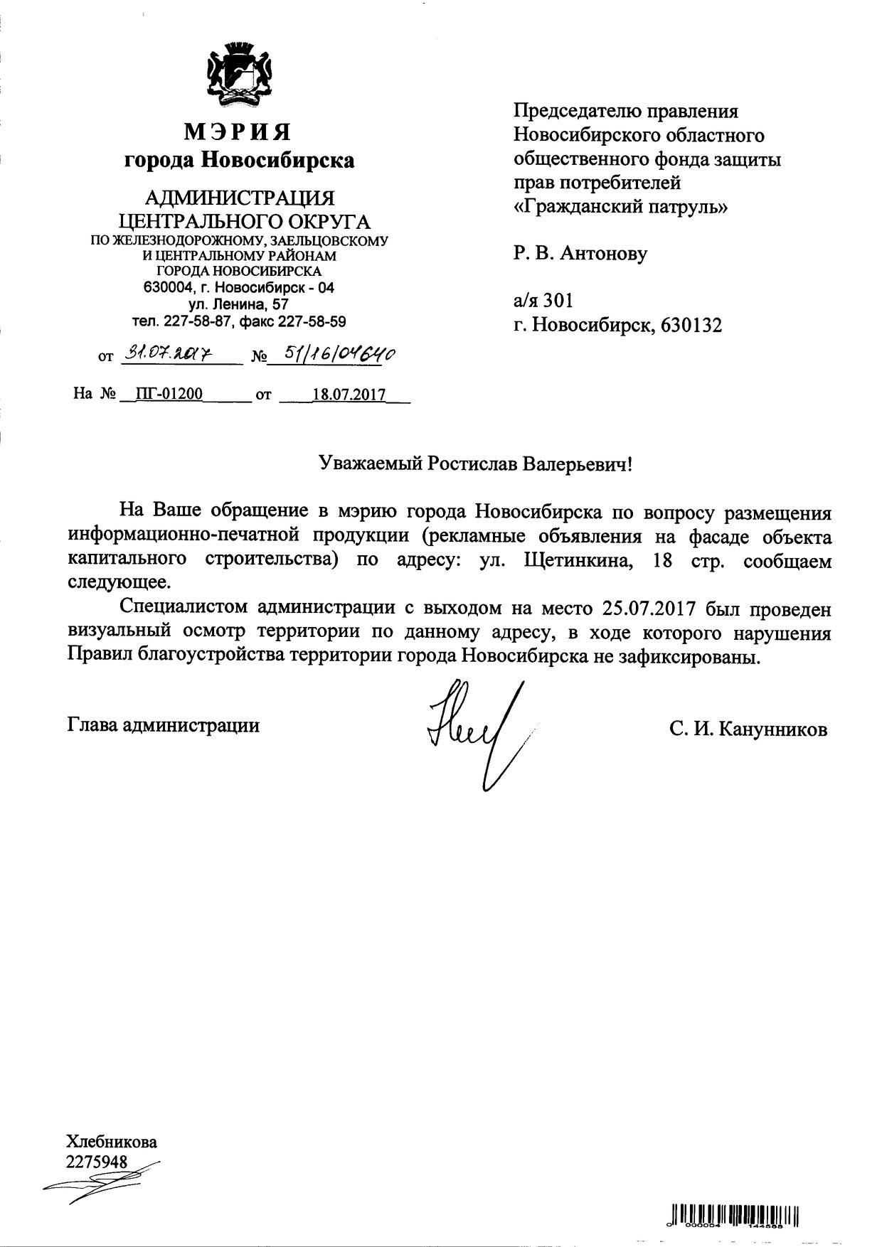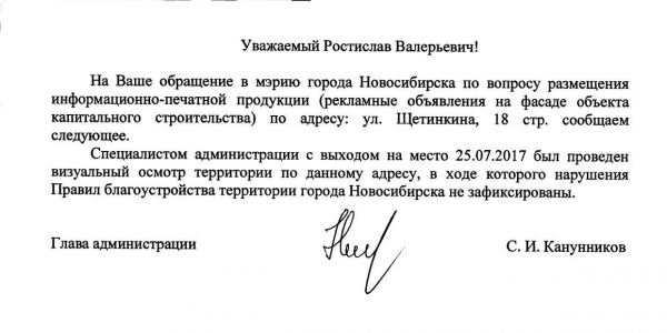 Номер жалобы:20925 Тип жалобы:Иные проблемы ЖКХ Название объекта:Управляющая Компания Регион:Новосибирская область Город:Новосибирск Адрес:ул. Щетинкина, 18 Описание жалобы:Надписи на фасаде Статус: