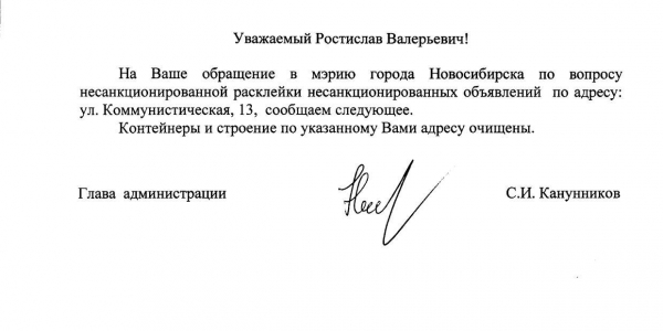 Номер жалобы:20940 Тип жалобы:Иные проблемы ЖКХ Название объекта:Управляющая Компания Регион:Новосибирская область Город:Новосибирск Адрес:Коммунистическая ул., 13 Описание жалобы:Надписи и объявления на мусорке Статус: