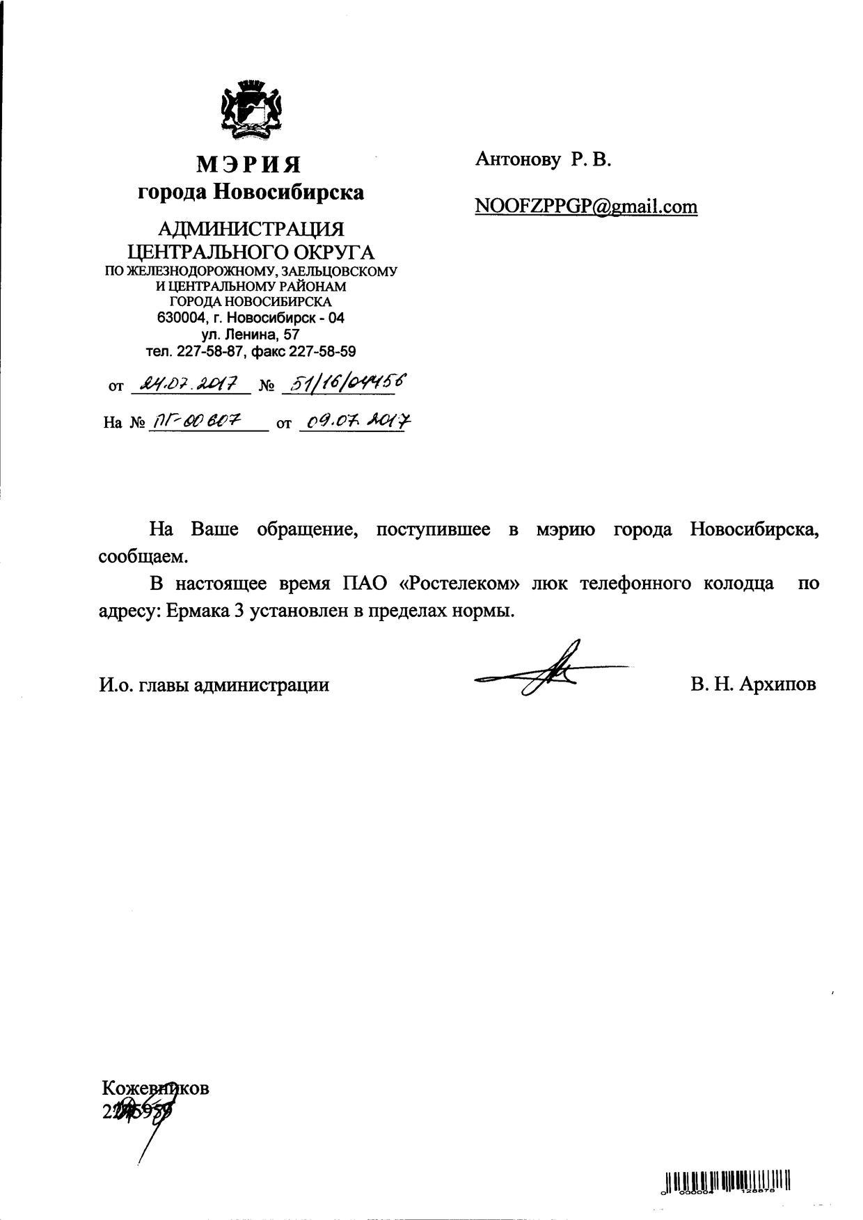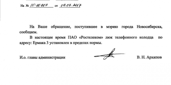 Номер жалобы:20622 Тип жалобы:Иные проблемы ЖКХ Название объекта:Администрация Регион:Новосибирская область Город:Новосибирск Адрес:ул. Ермака, 3 Описание жалобы:Яма образуется из-за люка Статус: