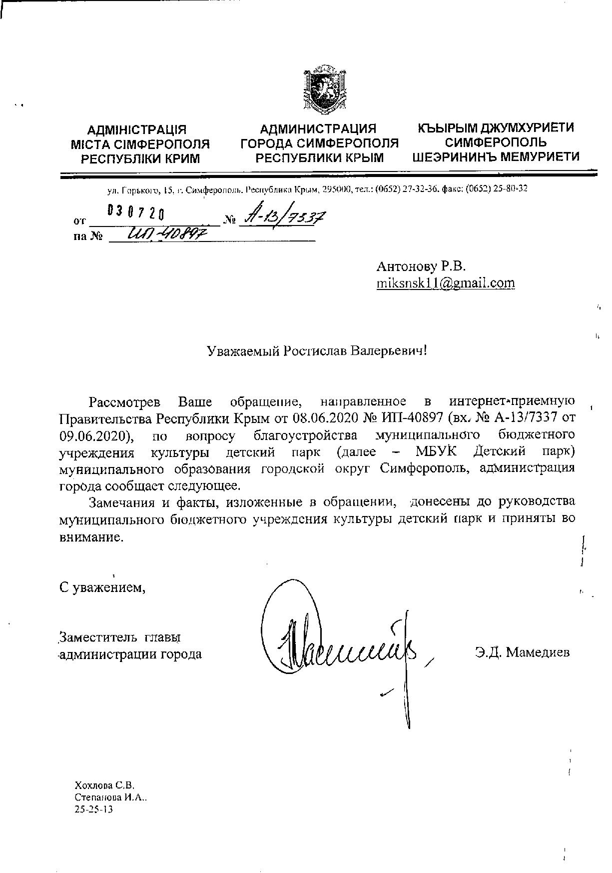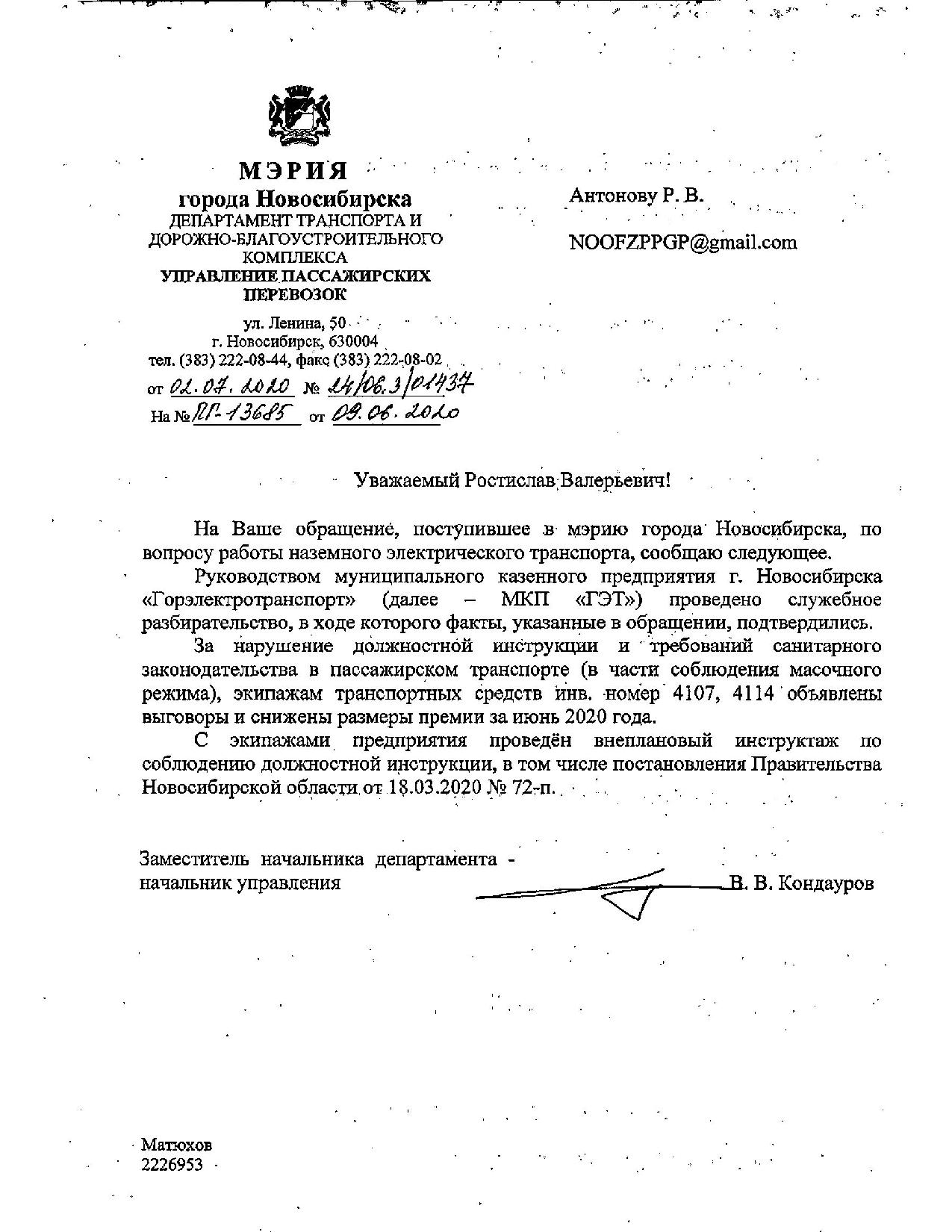 В ответ на Ваше письмо исх. номер 2397/25/01-17 от 15.06.2020, прошу: