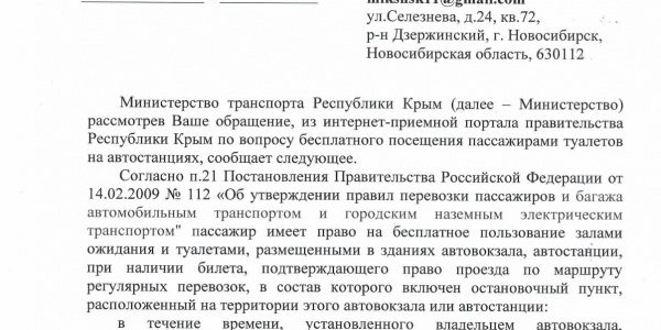Согласно п. 21 «Правил перевозок пассажиров и багажа автомобильным транспортом и городским наземным электрическим транспортом», утвержденных Постановлением Правительства РФ от 14.02.2009г. 112 закреплено право пассажира на бесплатное пользование залами ожидания и туалетами, размещенными в зданиях автовокзала, автостанции, если у него есть билет, срок действия которого не истек и который обеспечивает право проезда по маршруту регулярных перевозок, в состав которого включен остановочный пункт, расположенный на территории этого автовокзала или автостанции.