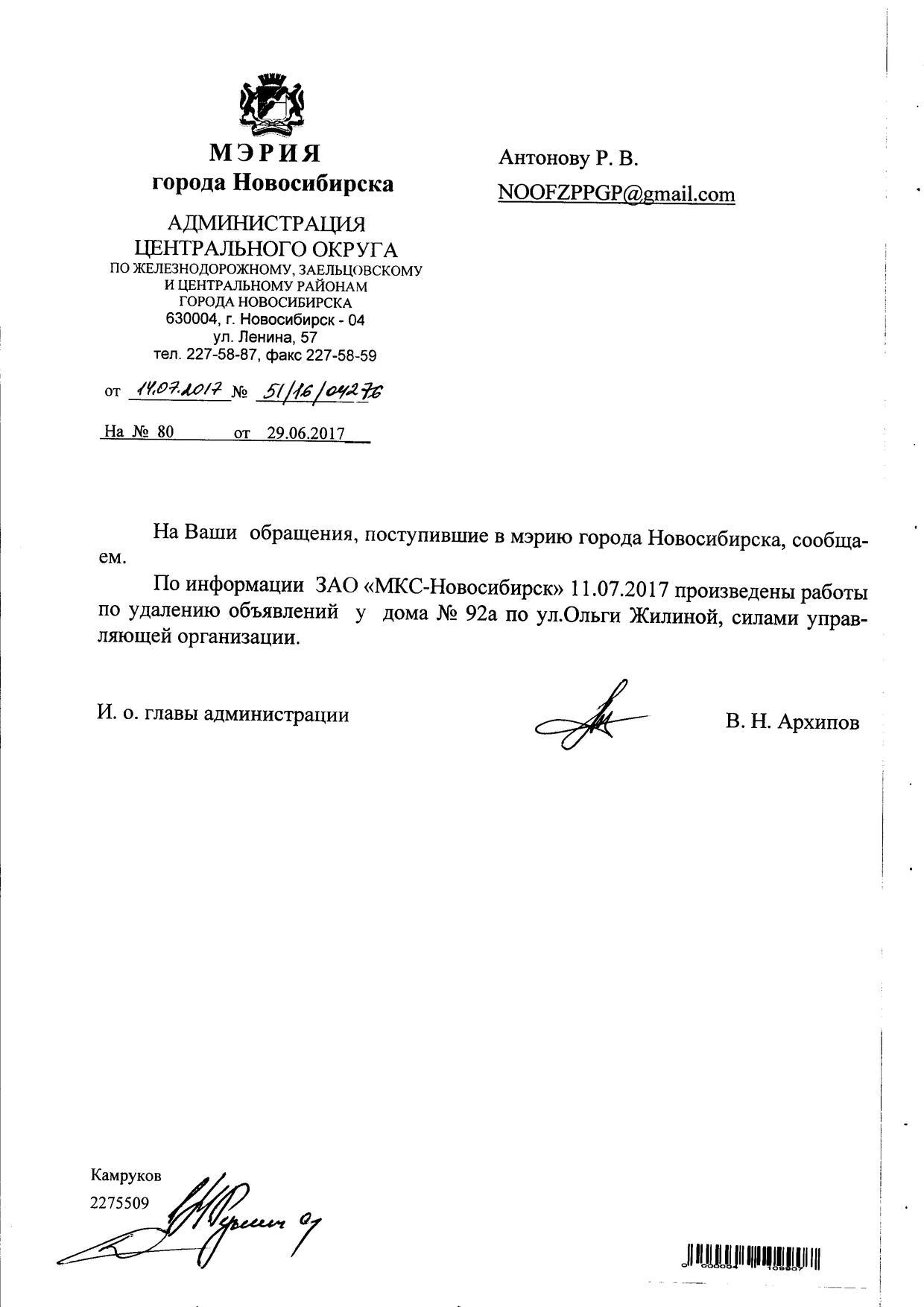 Номер жалобы:19854 Тип жалобы:Иные проблемы ЖКХ Название объекта:Управляющая Регион:Новосибирская область Город:Новосибирск Адрес:ул. Ольги Жилиной, 92А Описание жалобы:Объявления на гараже Статус: