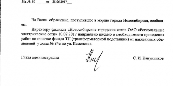 Номер жалобы:19798 Тип жалобы:Иные проблемы ЖКХ Название объекта:Управляющая Регион:Новосибирская область Город:Новосибирск Адрес:ул. Каменская, 84В Описание жалобы:Надписи на фасаде Статус: