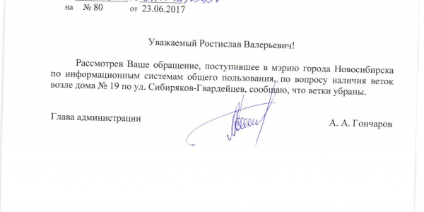 Номер жалобы:19561 Тип жалобы:Иные проблемы ЖКХ Название объекта:Управляющая Компания Регион:Новосибирская область Город:Новосибирск Адрес:ул. Сибиряков-Гвардейцев, 19 Описание жалобы:Ветки рядом с домом Статус: