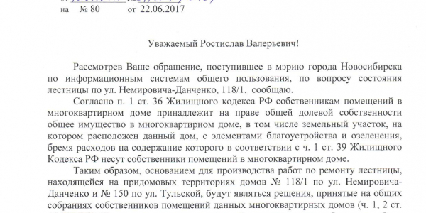Номер жалобы:19379 Тип жалобы:Иные проблемы ЖКХ Название объекта:Управляющая Компания Регион:Новосибирская область Город:Новосибирск Адрес:ул. Немировича-Данченко, 131А Описание жалобы:Реклама на хоз.корпусе Статус: