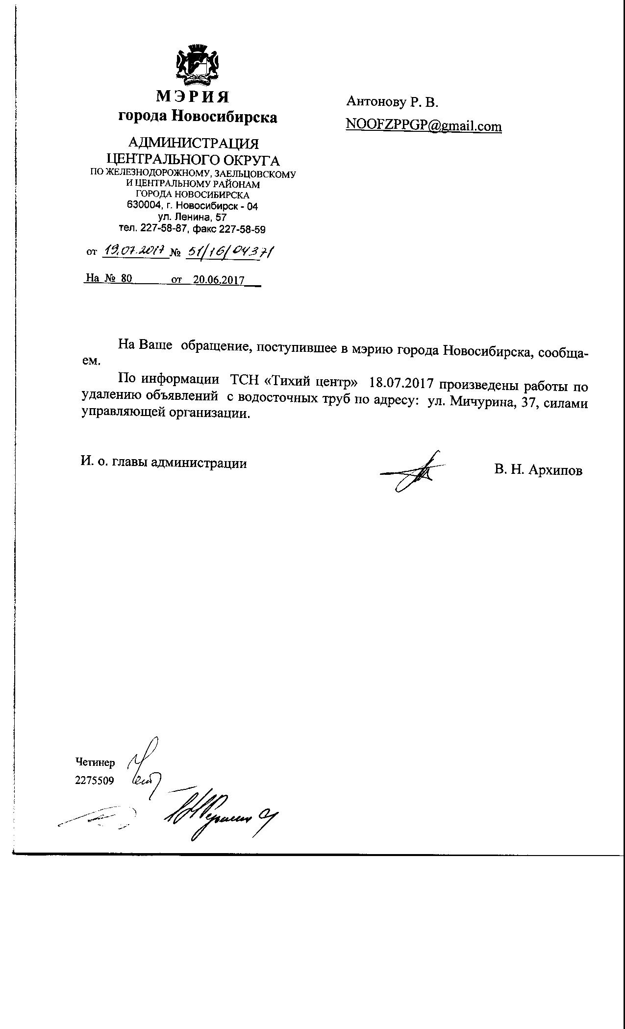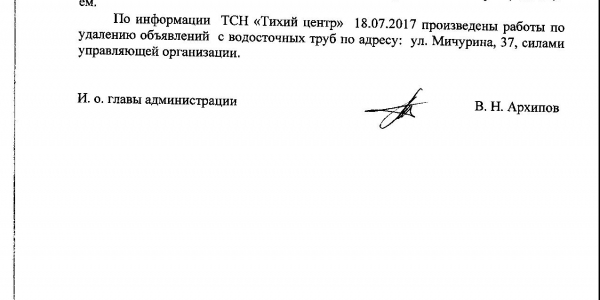 Номер жалобы:19286 Тип жалобы:Иные проблемы ЖКХ Название объекта:Управляющая Компания Регион:Новосибирская область Город:Новосибирск Адрес:ул. Мичурина, 37 Описание жалобы:Объявления на стенах дома Статус: