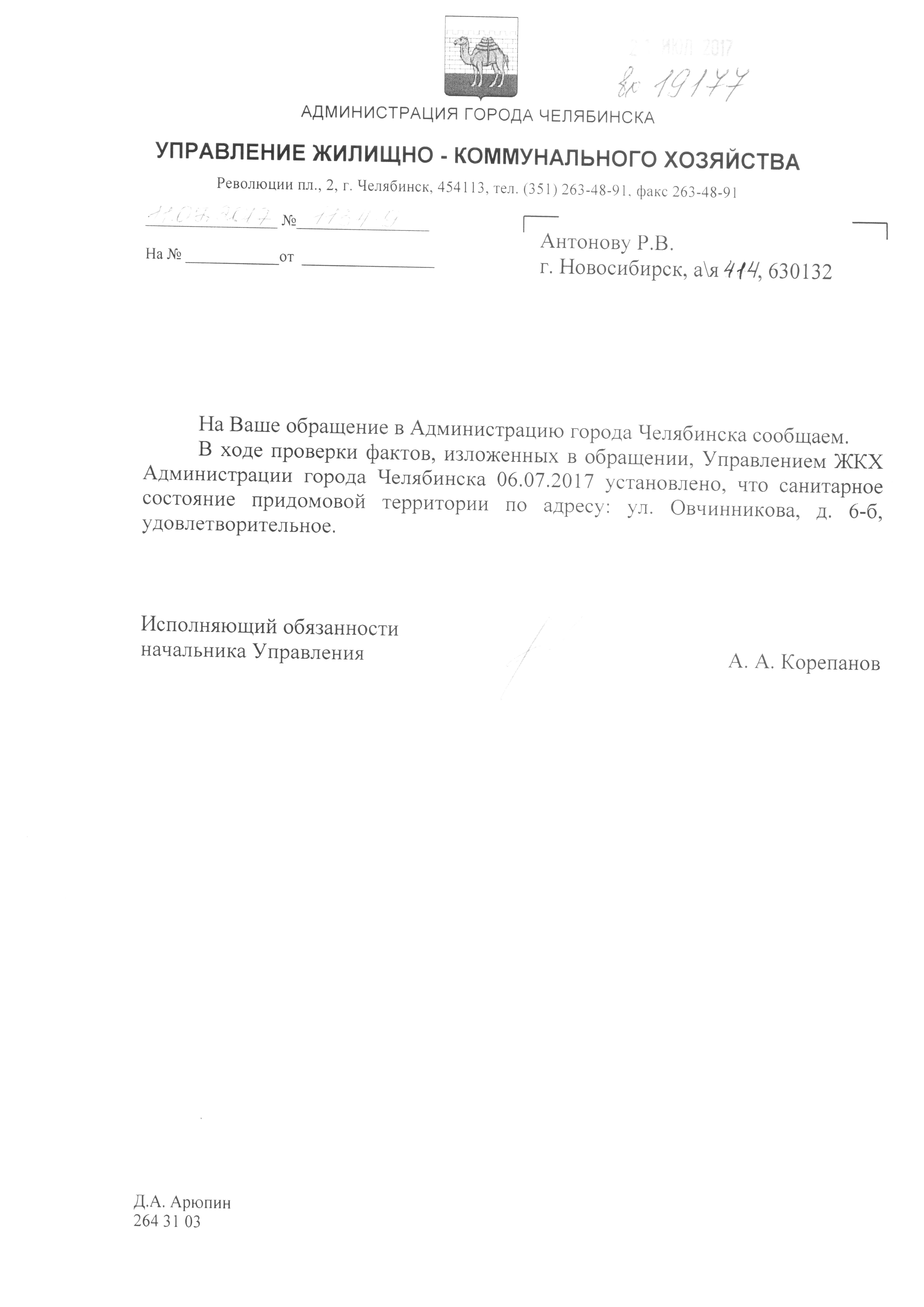 Номер жалобы:19023 Тип жалобы:Иные проблемы ЖКХ Название объекта:Управляющая Компания Город:Новосибирск Адрес:Новосибирск, улица Ватутина, 75 Описание жалобы:Объявления в неположенном месте,ямы Статус:
