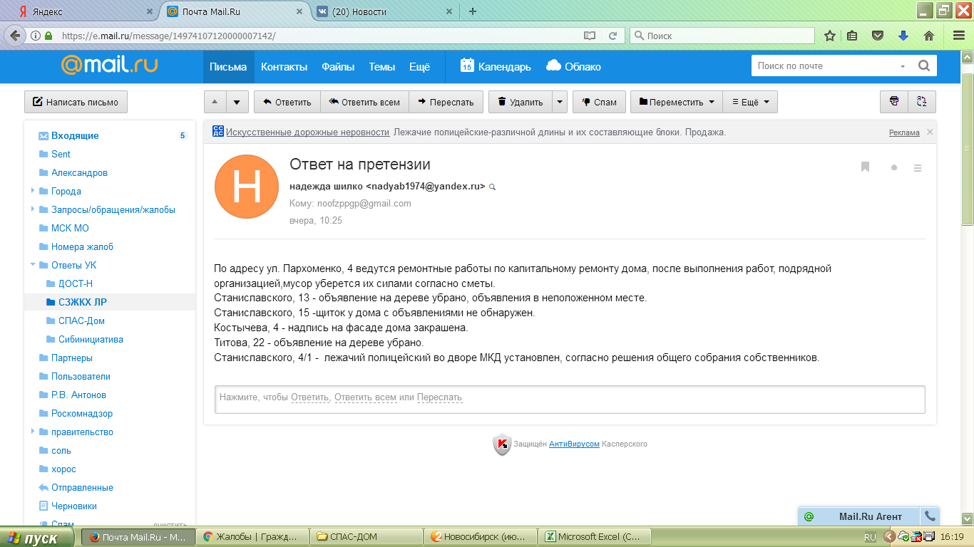 Номер жалобы:18980 Тип жалобы:Иные проблемы ЖКХ Название объекта:Управляющая Компания Город:Новосибирск Адрес:Новосибирск, 3-й Крашенинникова переулок, 10 Описание жалобы:Гаражи, объявления Статус: