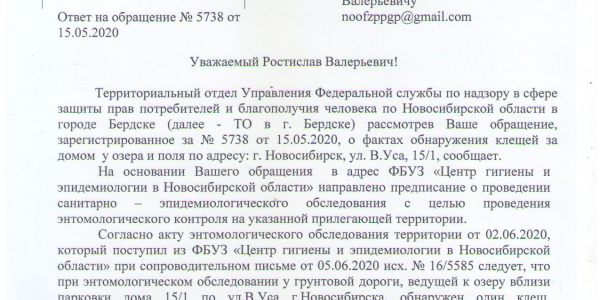 Номер жалобы:66022 Тип жалобы:Прочее Название объекта: Регион:Новосибирская область Город:Новосибирск Адрес:улица Виктора Уса, 15/1 Описание жалобы:Много клещей за домом Статус: