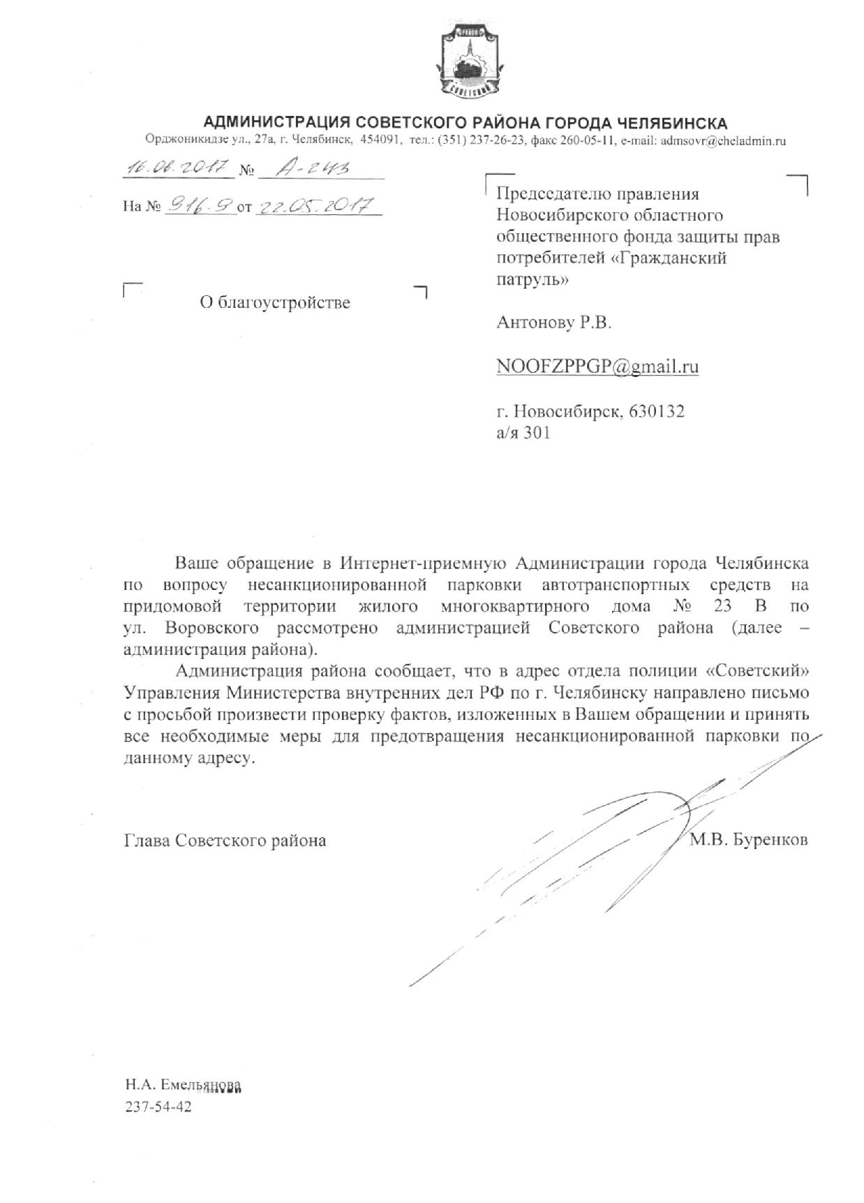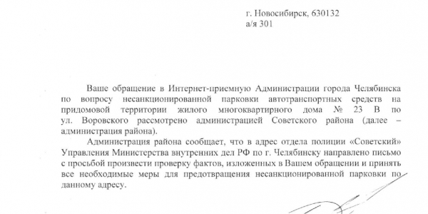 Номер жалобы:17705 Тип жалобы:Иные проблемы ЖКХ Название объекта:УК Город:Челябинск Адрес:Челябинск, улица Воровского, 23В Описание жалобы:На этом газоне возле детской площадки постоянно паркуются. Статус: