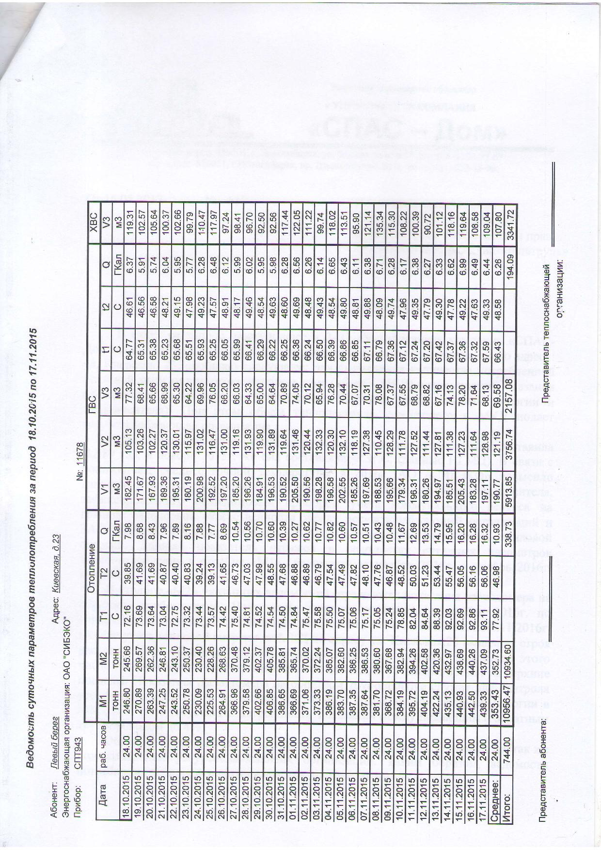 "Наш дом по ул. Киевская 23 обслуживает ЗАО «УК «СПАС-Дом. В декабре 2016г. на сайте ЗАО «УК «СПАС-Дом в Личном кабинете появилась «Ведомость суточных параметров теплопотребления» за период с 18.10.2016г. по 17.11.2016г.