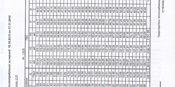 Довожу до вашего сведения, что эта ВЕДОМОСТЬ (таблица № 1) липовая. Она нарисована и не соответствует показаниям ОДПУ.Во-первых то, что закрашено желтым цветом ПРОСТО НЕ МОЖЕТ БЫТЬ, вы сами можете в этом убедиться. Во-вторых, итоговая строка в табл.№1, согласно данным, должна быть (-1215,91 Гкалл), сумма получается МИНУСОВАЯ, т.е. сумма НАРИСОВАНА!!!!!! Я проанализировала прошлые годы, привожу данные: