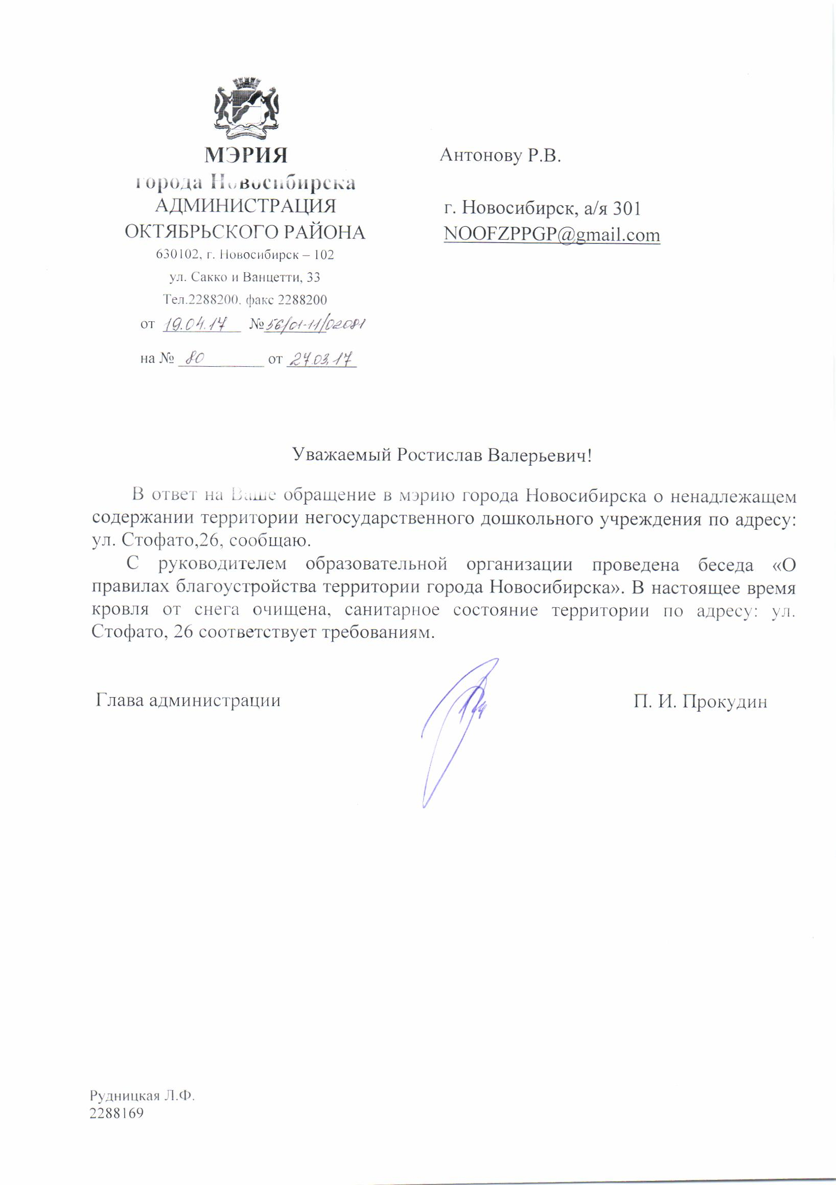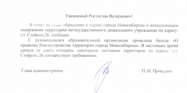 Номер жалобы:15914 Тип жалобы:Иные проблемы ЖКХ Название объекта:Управляющая Компания Город:Новосибирск Адрес:Новосибирск, улица Стофато, 22 Описание жалобы:Объявления и надписи в неположенном месте Статус: