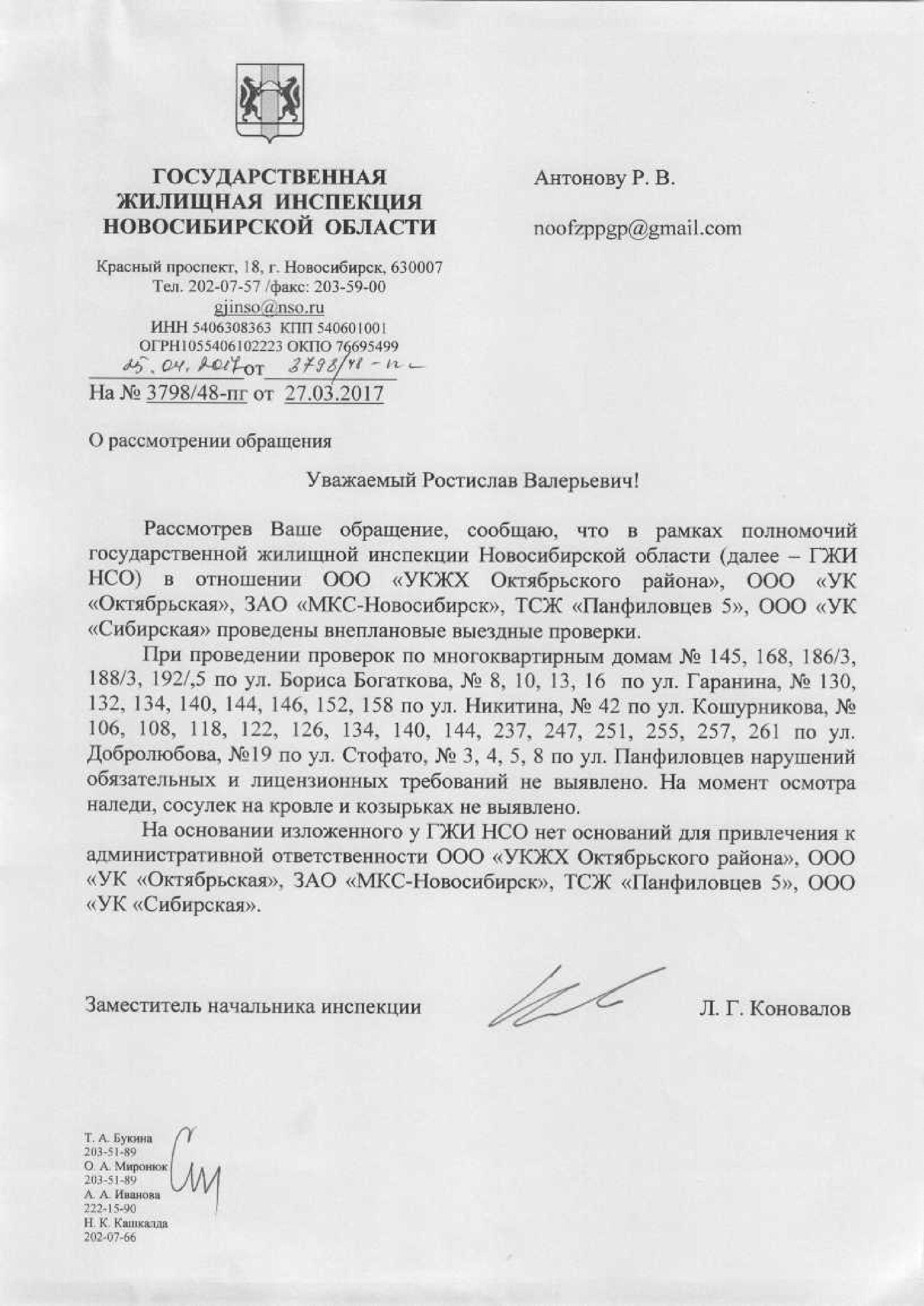 Номер жалобы:15867 Тип жалобы:Иные проблемы ЖКХ Название объекта:Управляющая Компания Город:Новосибирск Адрес:Новосибирск, улица Никитина, 130 Описание жалобы:Снег на крыше дома Статус: