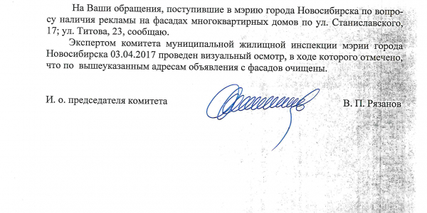 Номер жалобы:15639 Тип жалобы:Иные проблемы ЖКХ Название объекта:Управляющая Компания Город:Новосибирск Адрес:Новосибирск, улица Станиславского, 17 Описание жалобы:Объявления в неположенном месте Статус: