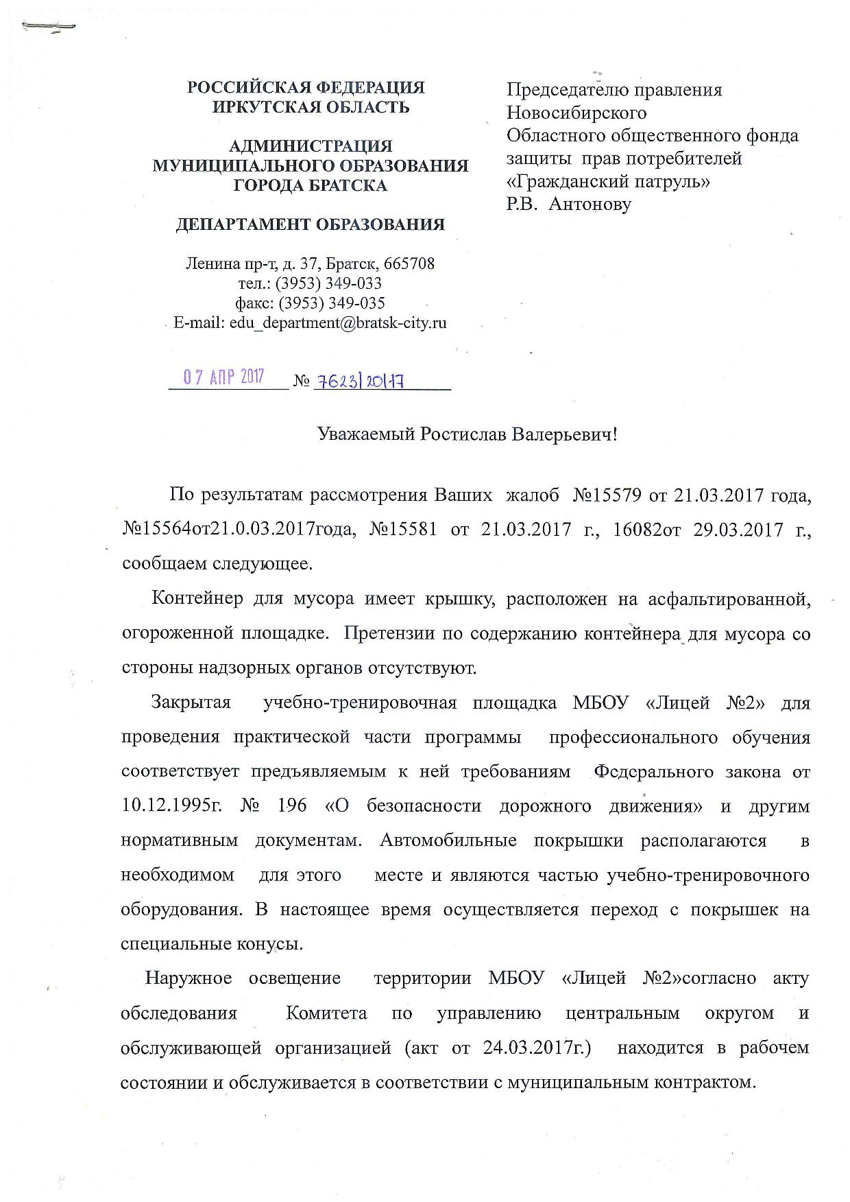 Номер жалобы:15579 Тип жалобы:Иные проблемы ЖКХ Название объекта:Администрация Братска Регион:Иркутская область Город:Братск Адрес:улица Крупской, 29 Описание жалобы:Нарушение СанПИН, а именно: