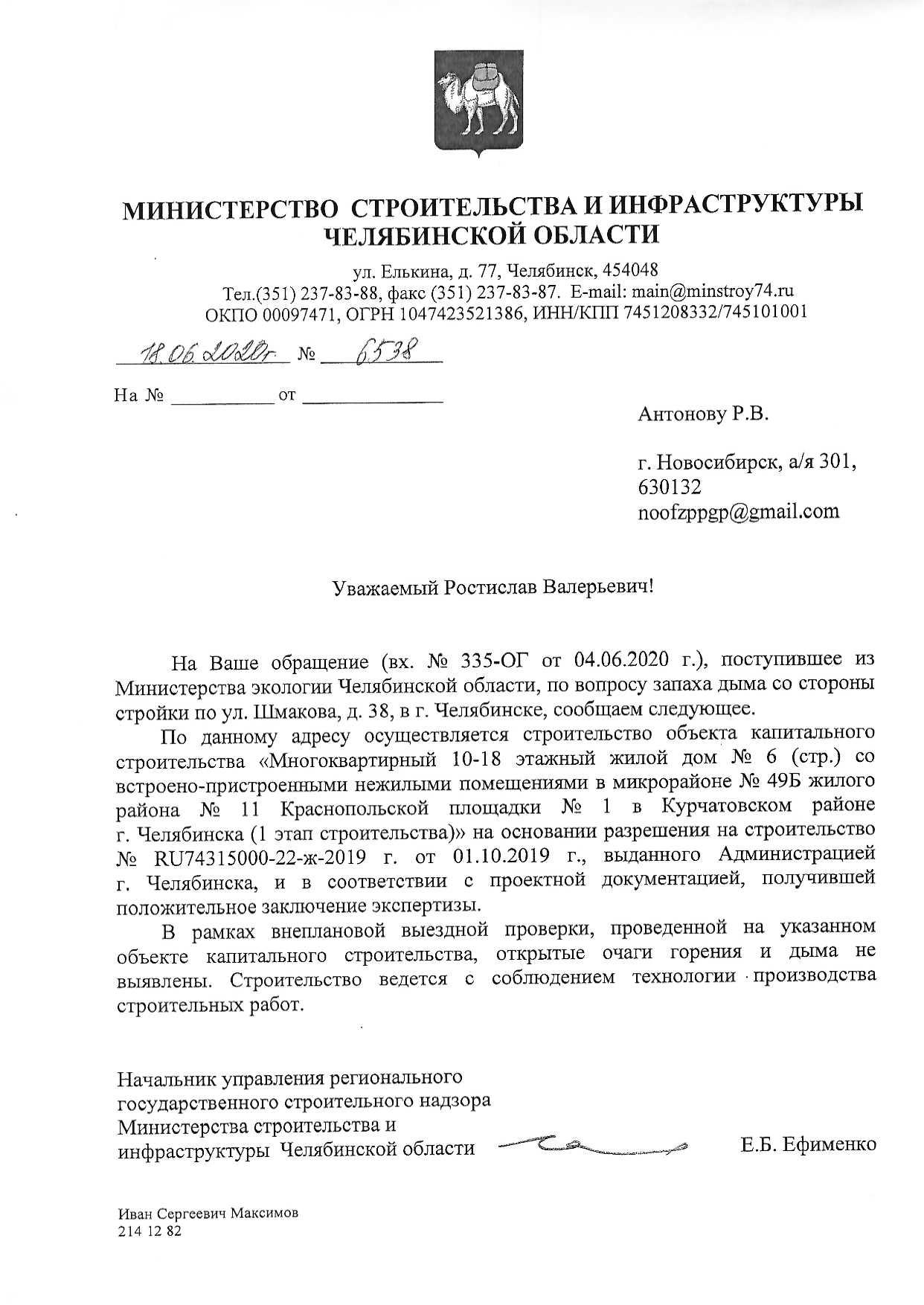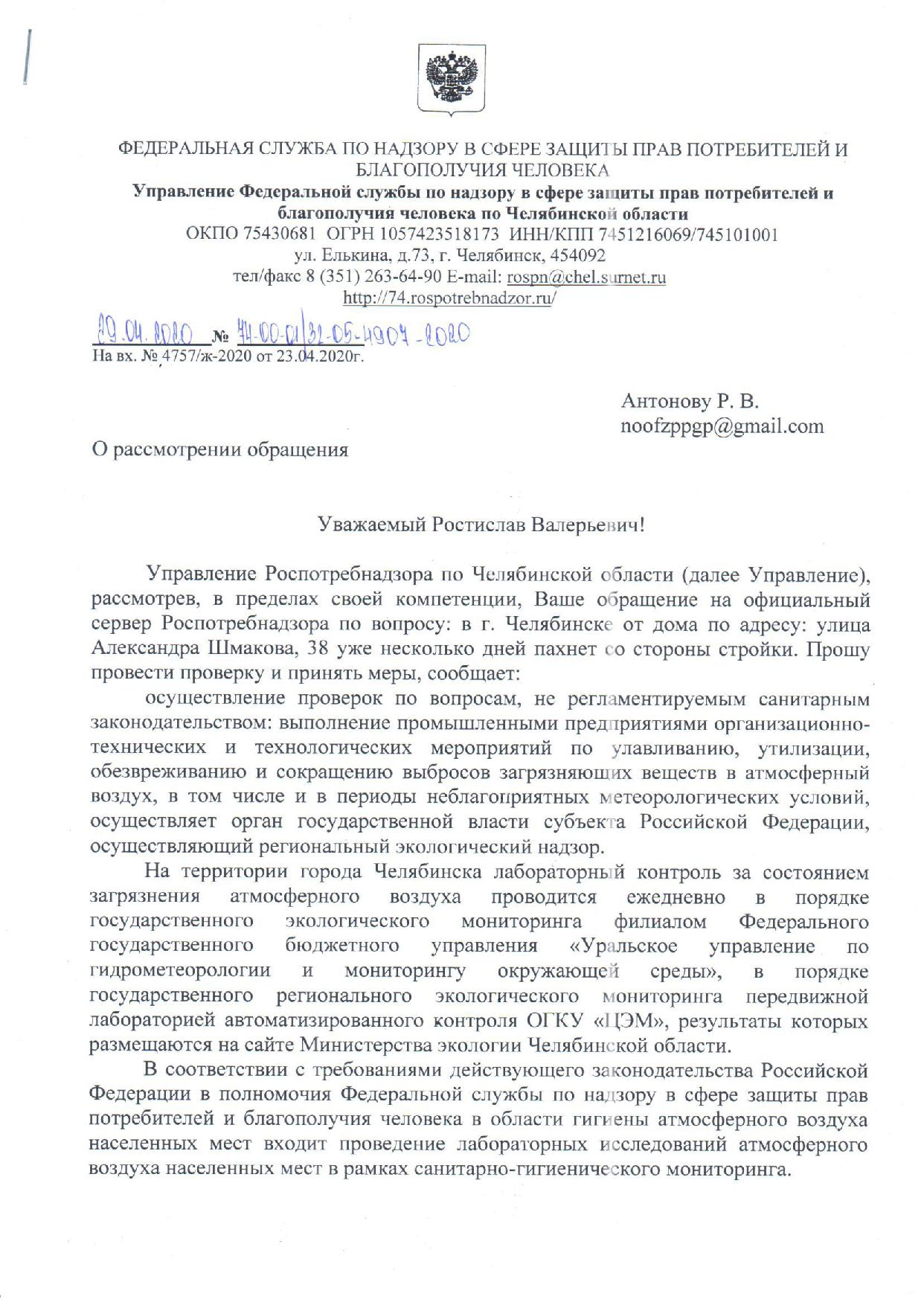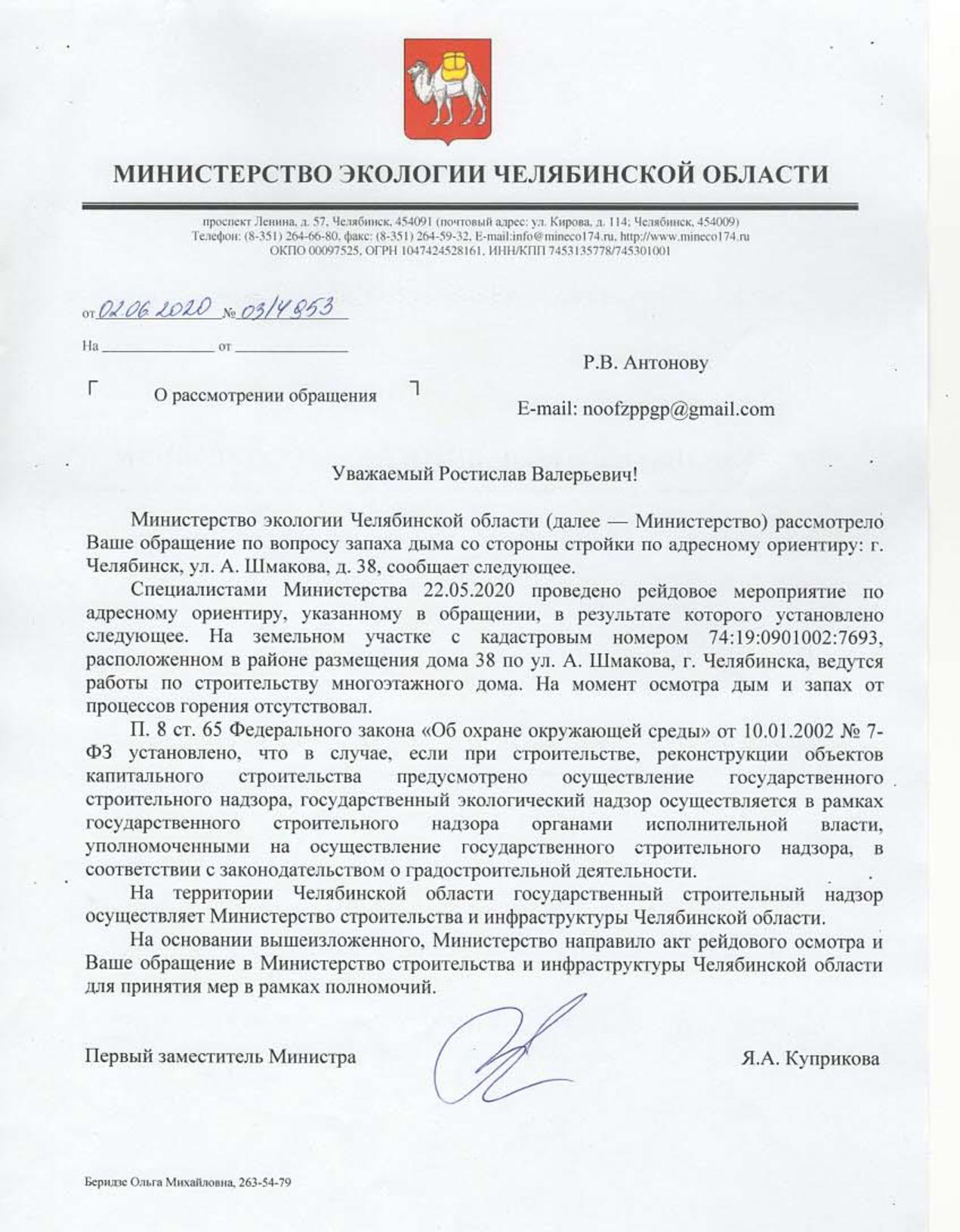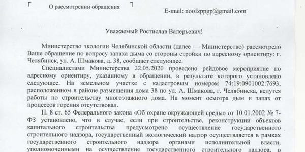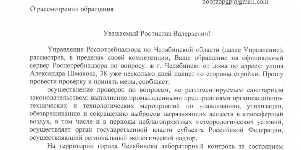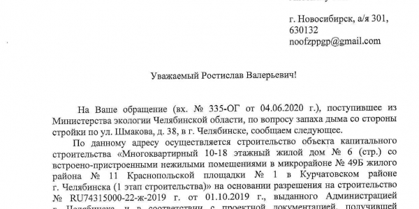 Номер жалобы:65547 Тип жалобы:Прочее Название объекта: Регион:Челябинская область Город:Челябинск Адрес:улица Александра Шмакова, 38 Описание жалобы:Уже несколько дней пахнет дымом со стороны стройки, это не похоже на строительные нужды. Окна в квартире невозможно открыть. Статус: