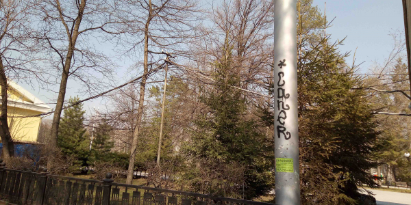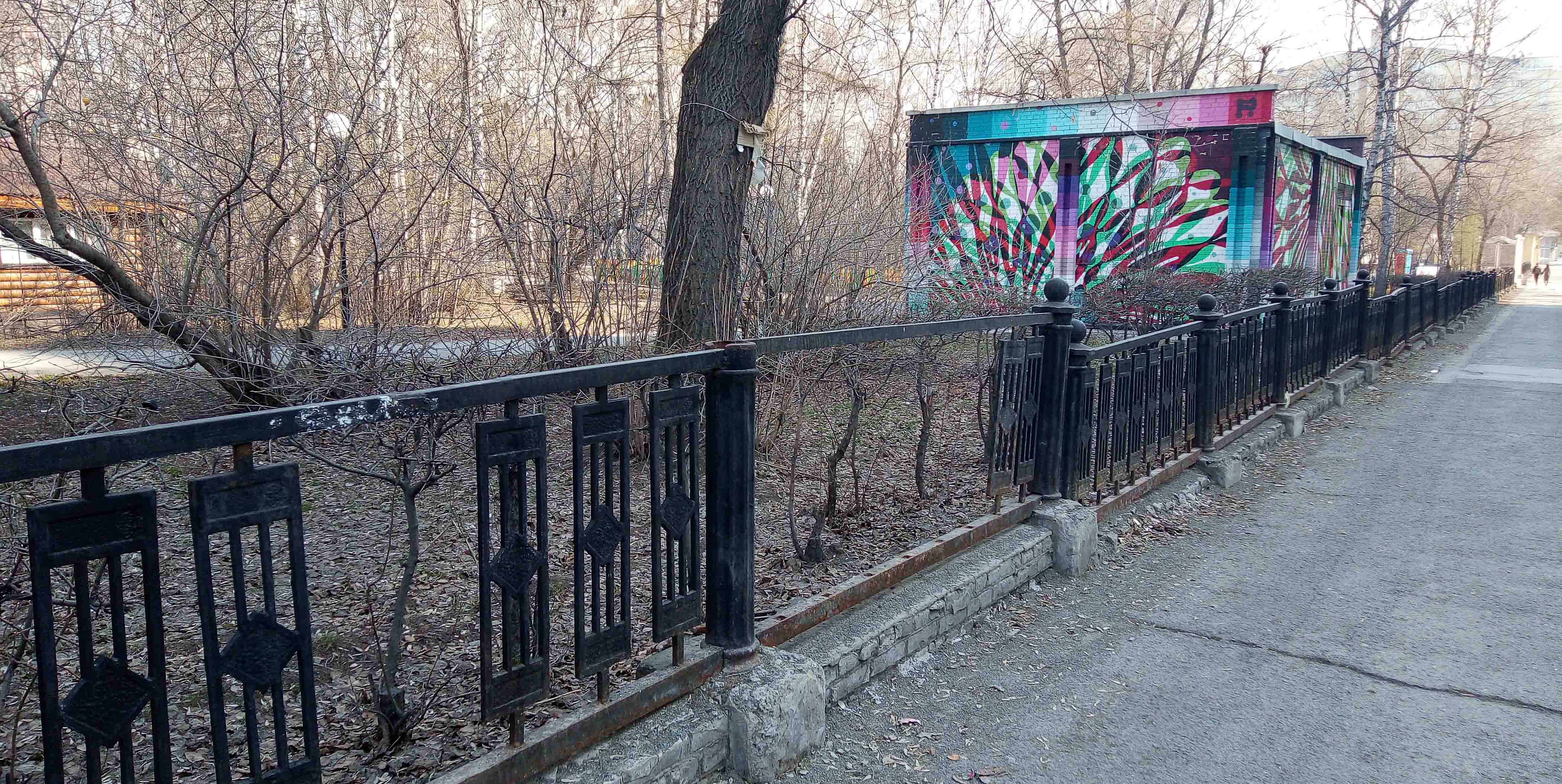 граффити присутствует на стенах туалета, который расположен возле остановки "Стадион Спартак". еще ему нужен косметический ремонт - в основании туалета осыпается отделка. также надписями изуродована авторская карта Новосибирск, расположенная на угловом входе в парк, со стороны перекрестка Мичурина и Фрунзе.