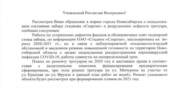 Кроме того, от пересечения Крылова с Мичурина, со стороны стадиона, имеются разрушения асфальта тротуара. Статус:
